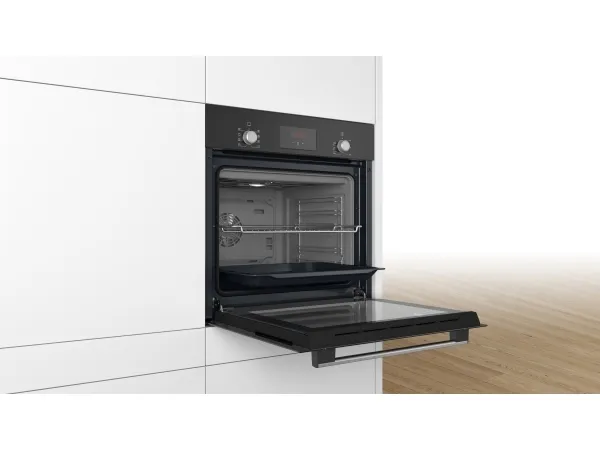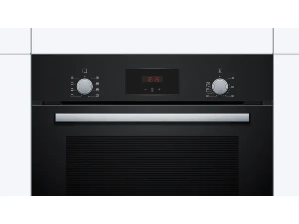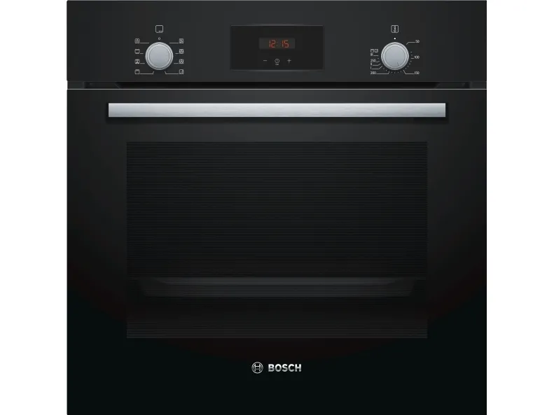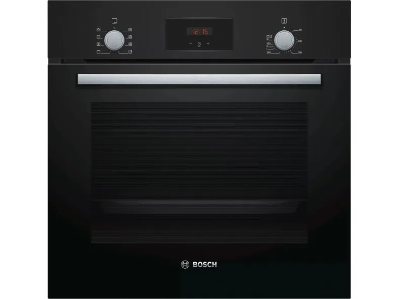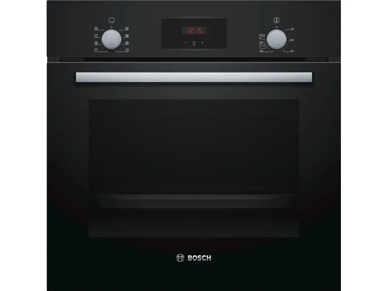 Bosch Serie 2 HBF153BB0. Oven size: Medium, Oven type: Electric, Total oven(s) interior capacity: 66 L. Appliance placement: Built-in, Product colour: Black, Control type: Rotary, Touch. Clock type: Electronic, Timer type: Digital. Energy consumption (conventional): 0.98 kWh, Energy consumption (forced convection): 0.79 kWh, Energy efficiency scale: A+++ to D. Lamp type: Halogen