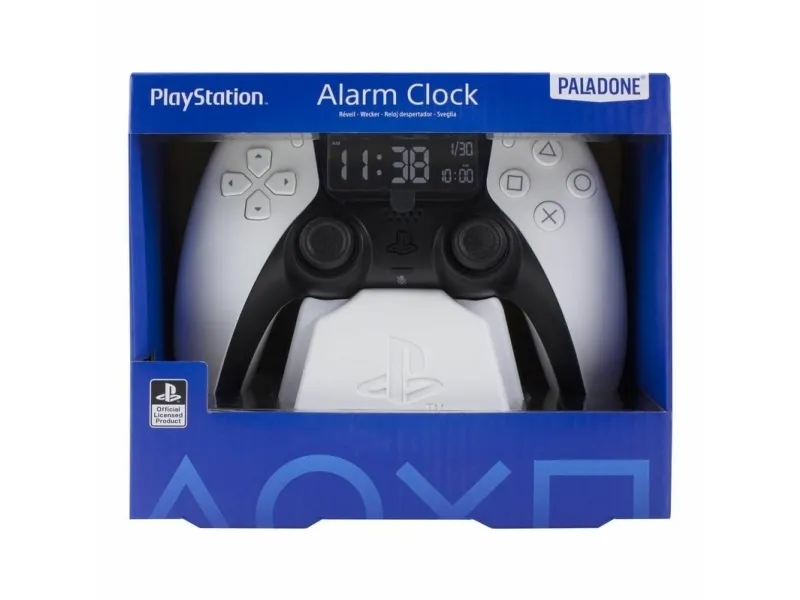 The PlayStation 5 Controller Alarm Clock is a great home accessory for any console gamer.Paladone PP9405PS. Type: Digital alarm clock, Product colour: Black, White. Display type: LCD. Height: 158 mm. Quantity per pack: 1 pc(s). Cables included: USB
