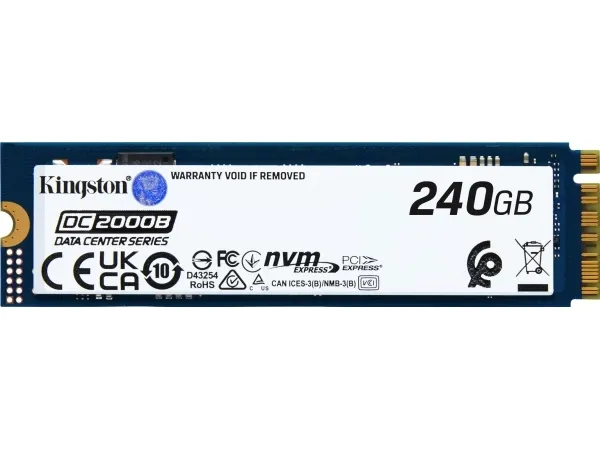 Kingston DC2000B is a high-performance PCIe 4.0 NVMe M.2 SSD using a Gen 4x4 PCIe controller and 3D TLC NAND. Ideally suited for use in high-volume rack-mount servers as an internal boot drive(s) to preserve valuable front-loading drive bays, as well as for use in purpose-built systems where a high-performance M.2 SSD is needed that includes hardware-based on-board power loss protection (PLP). New for DC2000B is an integrated aluminium heatsink that offers broader thermal compatibility for a wide range of systems. DC2000B delivers low latency and excellent IO consistency to handle various workloads from boot drive applications to high-speed application caching. DC2000B is rated at 0.4 DWPD write endurance and carries a 5-year warranty."