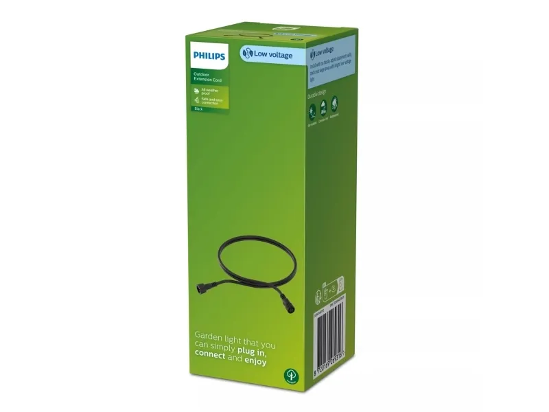 Philips Extension cord 2m. Type: Extension cord, Product colour: Black, Brand compatibility: Philips by Signify. Output voltage: 24 V. Length: 2000 mm, Width: 20 mm, Height: 20 mm. Quantity per pack: 1 pc(s), Package width: 5.2 mm, Package height: 13.7 mm. Package net weight: 80 g, Package gross weight: 100 g