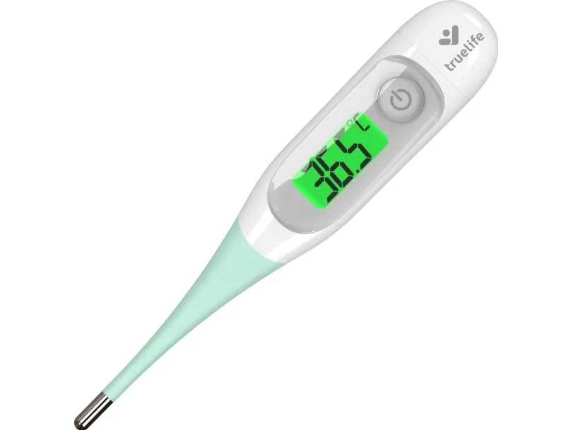 TrueLife Care T3 contact thermometer – a classic in a modern guise If you place your trust in more traditional methods, you’ll love the TrueLife Care T3 contact thermometer. Complementing our range of TrueLife non-contact thermometers, it’s proof that even classics can be modernised. This reliable digital thermometer with a flexible tip takes a reading in just 5 seconds, and it’s extremely precise. View the measurement instantly on the easy-to-read display, which changes backlight colour depending on the temperature. Suitable for children and adults, the thermometer carefully measures the temperature in three places on the body, and can even measure the temperature of water. As the TrueLife Care T3 contains no mercury, glass or harmful substances, you can simply pack it in the travel case and take it wherever you go. Plus, the battery lasts up to 1000 measurements.