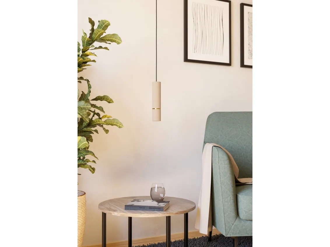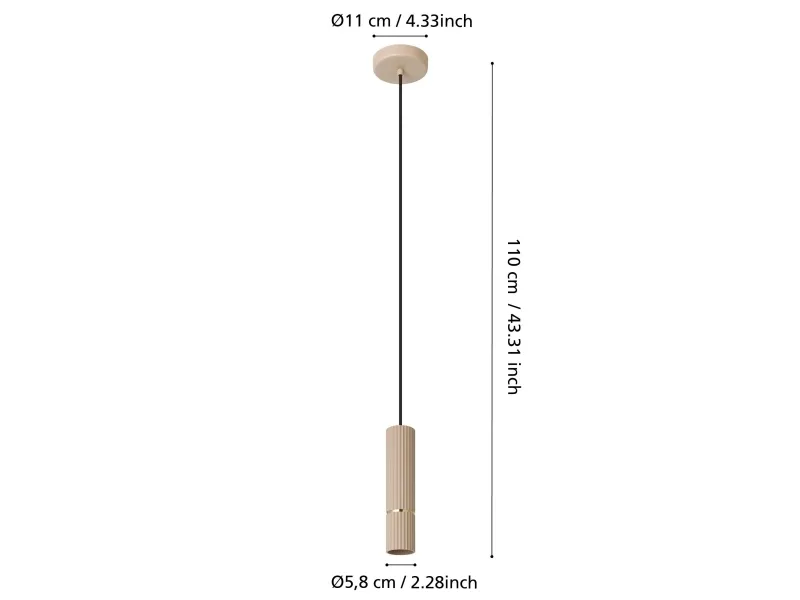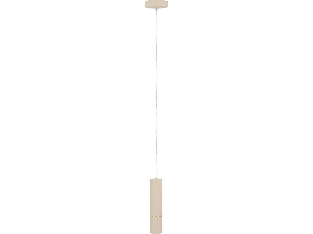 EGLO CAMINIA pendel i sand og børstet messing. Med sort tekstilledning. Højde 110 cm, diameter 6 cm. GU10, 5 watt, 345 lumen, 3000 kelvin. IP20. Dette produkt indeholder en lyskilde med energieffektivitetsklasse: G. Opdag den perfekte kombination af elegance og funktionalitet med Caminia pendel i sandfarvet design og smukke detajer i børstet messing fra EGLO. Lampen har en højde på 110 cm, og en diameter på 6 cm. Den leveres med en effektiv GU10 lyskilde med kun 5 watts energiforbrug, der udsender en behagelig lysstyrke på 345 lumen og en dejlig varm glød ved 3000 kelvin, der gør den velegnet til både hyggebelysning, men også god til arbejdsbelysning. Med sit stilrene og flotte design tilføjer lampen et strejf af raffinement til enhver boligindretning. De elegante detaljer og energibesparende egenskaber, gør den til det perfekte valg for dig, der værdsætter både stil og bæredygtighed. Lampen er klassificeret med IP20 for ekstra sikkerhed og holdbarhed, og indeholder en lyskilde med energieffektivitetsklasse: G. Vores Caminia-serie omfatter også en langbordspendel samt væg-, bord- og gulvlampe, så du kan skabe en sammenhængende belysningsoplevelse i dit hjem.