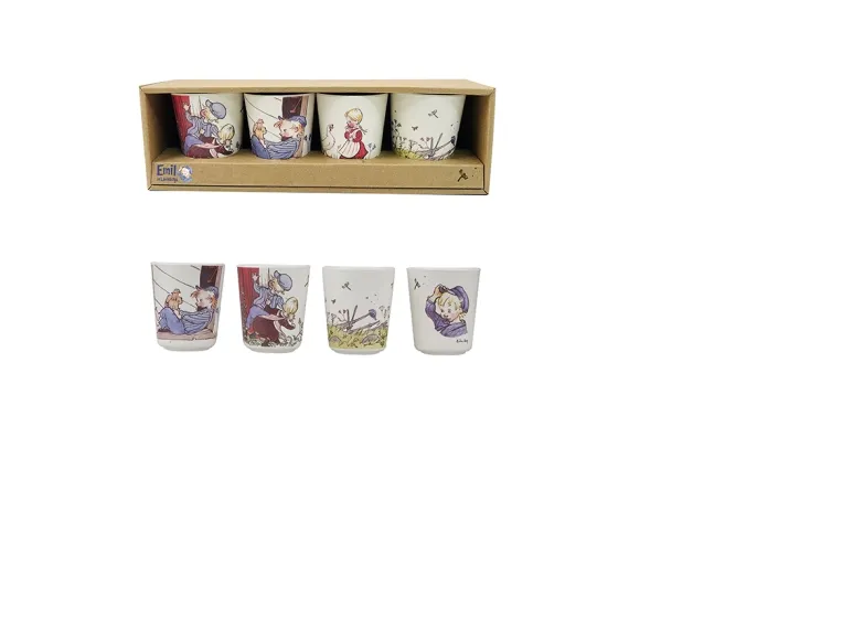 Gør måltiderne mere eventyrlige for dine børn med "Emil fra Lønneberg 4 kopper sæt". Dette sæt indeholder fire charmerende kopper, dekoreret med levende scener fra Emil fra Lønneberg verden. Ikke alene tilføjer de et strejf af sjov til hverdagsmåltiderne, men de er også en ideel ledsager til de små, som lige har mestret kunsten at drikke selv - helt uden at spilde. Disse kopper er fremstillet af BPA-fri melaminharpiks, et materiale der er kendt for sin holdbarhed og praktiske anvendelighed, perfekt til daglig brug, picnic og meget mere. Med dette sæt får dine børn deres helt egen kop, pyntet med de elskede figurer fra Emils univers, som de uden tvivl vil værdsætte og nyde. Disse kopper er mere end blot en del af servicet - de er en gave, der bygger broer. Måltiderne bliver en tid til at knytte bånd, lære og dele vigtige øjeblikke. De kan forbedre børns sprog, sociale interaktioner og motoriske færdigheder, mens de lærer om bordmanerer og tålmodighed. En fantastisk gaveide til barnedåb, navngivningsfester, fødselsdage eller julegaver. Barbo Toys har designet disse produkter i Danmark med øje for bæredygtighed og høj kvalitet. Vores "lær gennem leg"-filosofi er integreret i hvert design, for at stimulere og udvikle barnets fantasi og læring. Hver kop er 9 cm høj og sikker for børn - BPA-fri og opvaskemaskinevenlig, dog ikke egnet til mikrobølgeovn. Inviter Emil og vennerne til bordet og se dit barns verden udvide sig med hver eneste sip.