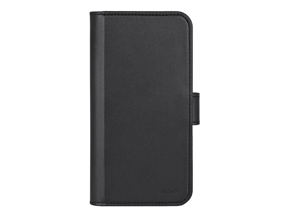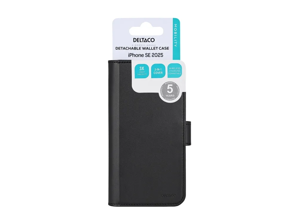 DELTACO - Lommebok for mobiltelefon - 2-i-1, magnetisk - MagSafe-samsvar - veganlær, PU-skinn (termoplastisk polyuretan + polykarbonat) - svart - for Apple iPhone 16e