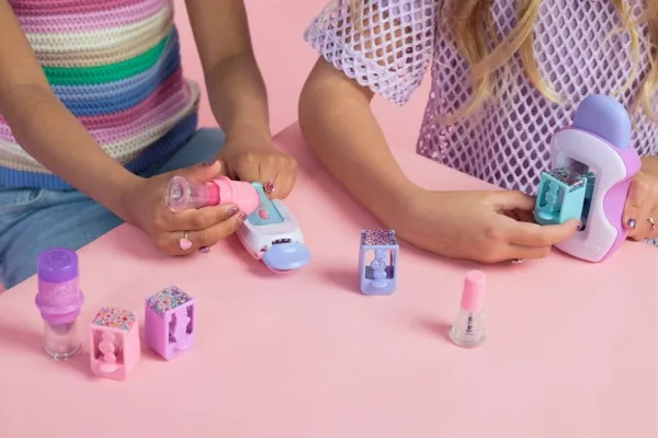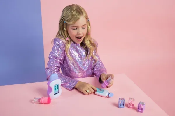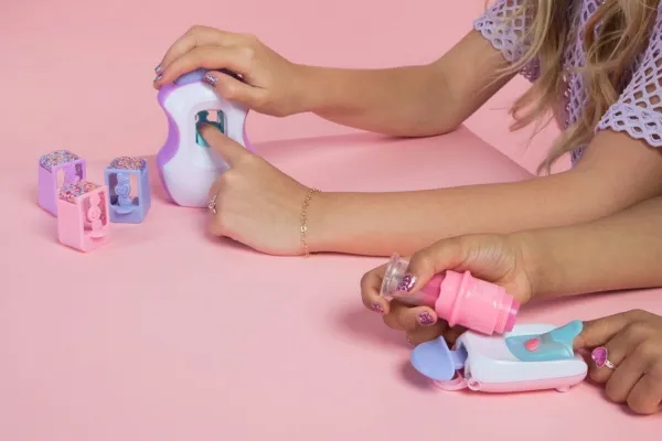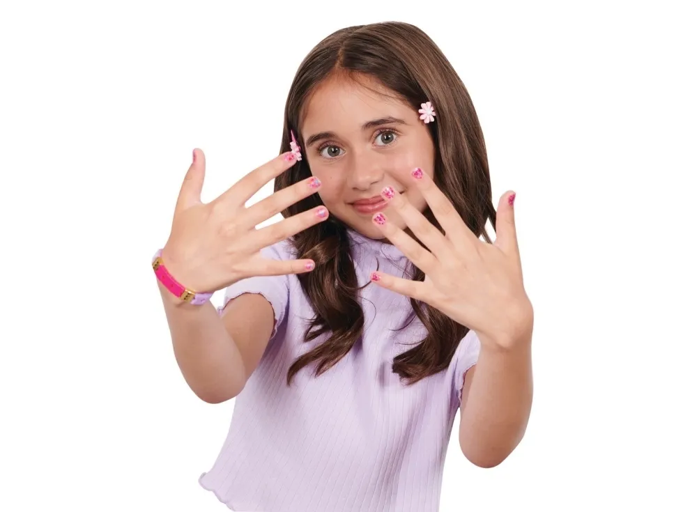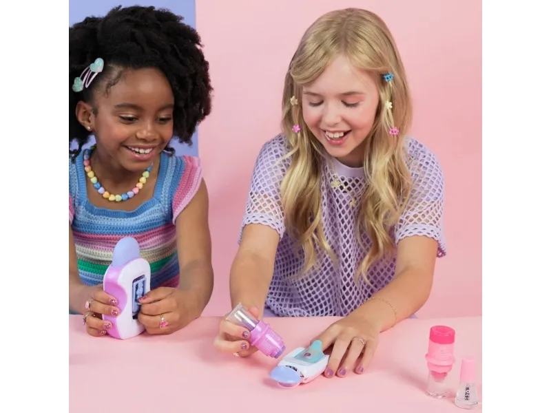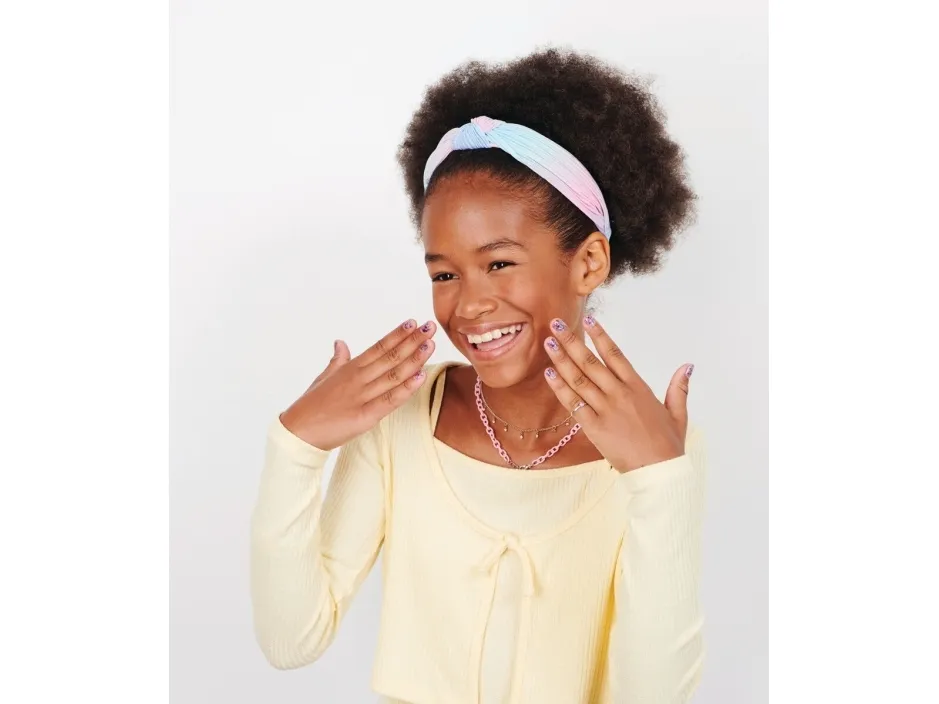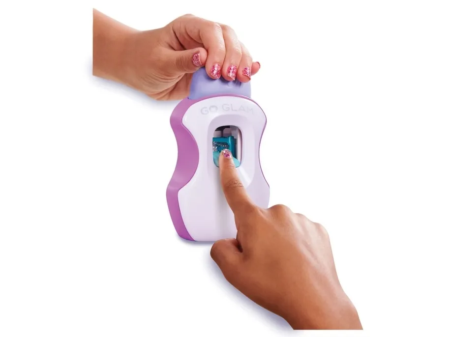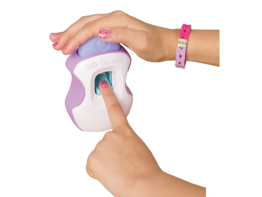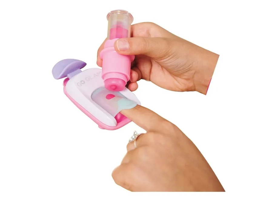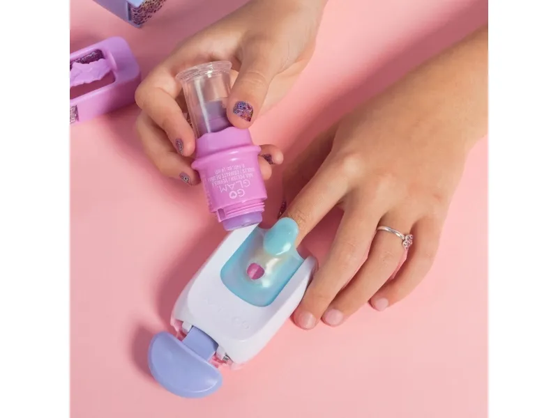 Easily stamp manicures with Cool Maker GO GLAM Nail Studio! This nail design kit will inspire creativity and build confidence as girls express their style, designing their own manicures. Updated easy-paint polish applicators and a nail mask make it easier than ever to pop, paint, and press 200 nails of any size! Kids can choose from 4 stylish designs: holographic hearts, shimmery flowers, cute smileys, and pretty butterflies. Pop a cartridge into the machine and close the mask over a finger and adjust – its silicone cover exposes the nail to keep polish off skin. The pink and purple easy-to-use nail polish applicators take the guesswork out of coats; it dabs the right amount of color onto every nail! After approximately 4 minutes drying time, polish will have a tacky finish that smooths once stamped. Insert a finger into the stamper and press to reveal a perfectly designed nail! Finish with the top coat for a glossy look! Whether you’re looking for birthday gifts for girls, an art kit, kids crafts or exciting kids activities for sleepovers, spa days, back-to-school, rainy days or anytime, Cool Maker GO GLAM Nail Studio nail stamper kit is a welcome addition to the DIY fun!