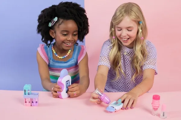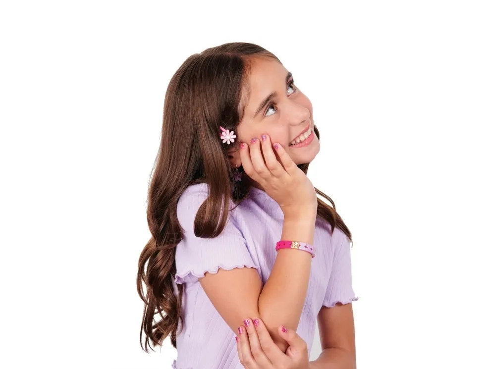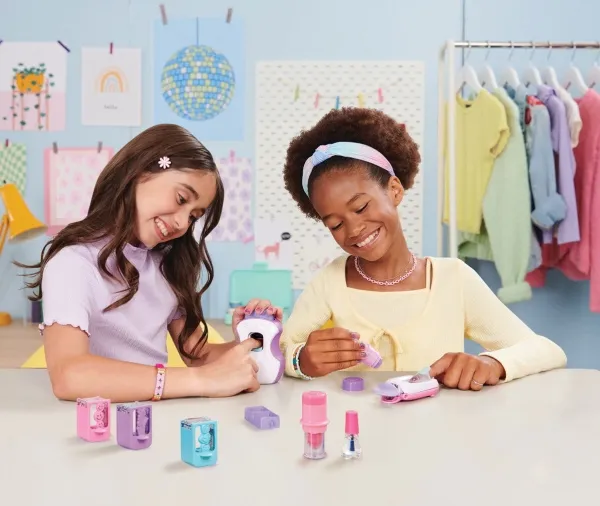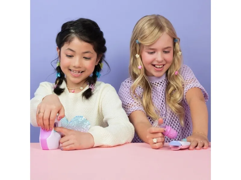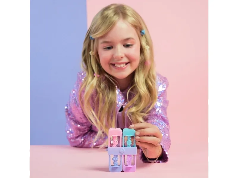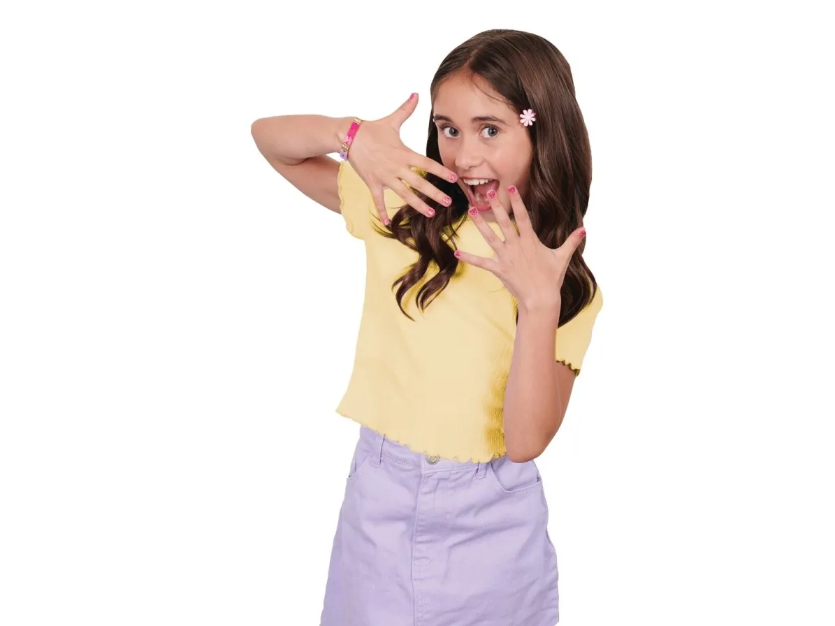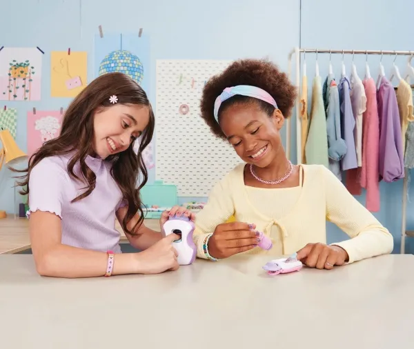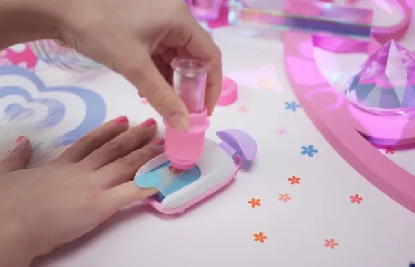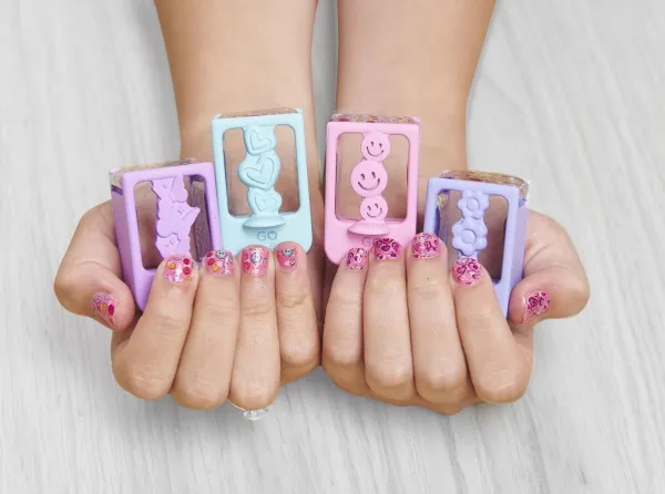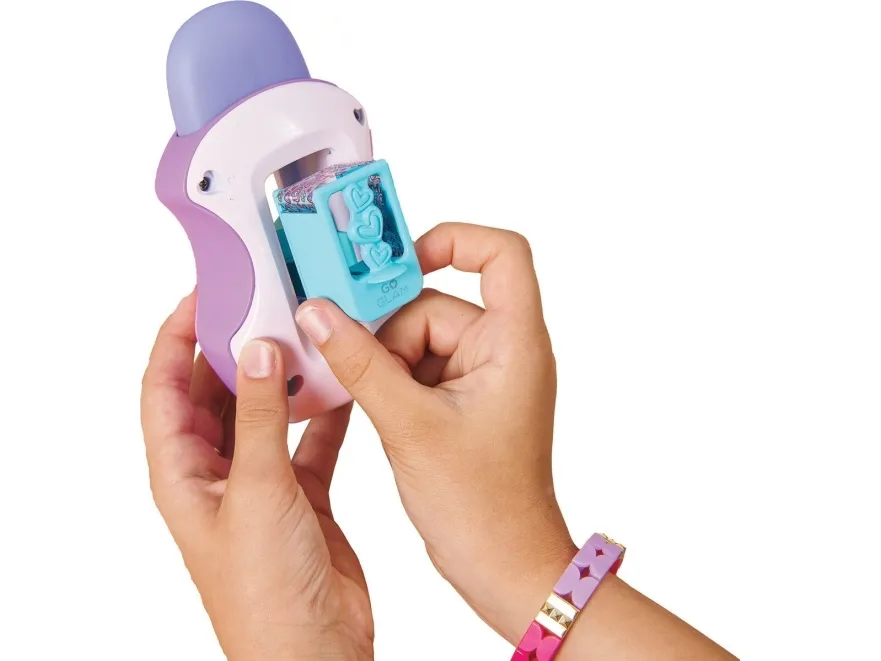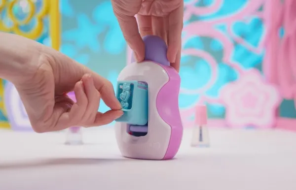 Easily stamp manicures with Cool Maker GO GLAM Nail Studio! This nail design kit will inspire creativity and build confidence as girls express their style, designing their own manicures. Updated easy-paint polish applicators and a nail mask make it easier than ever to pop, paint, and press 200 nails of any size! Kids can choose from 4 stylish designs: holographic hearts, shimmery flowers, cute smileys, and pretty butterflies. Pop a cartridge into the machine and close the mask over a finger and adjust – its silicone cover exposes the nail to keep polish off skin. The pink and purple easy-to-use nail polish applicators take the guesswork out of coats; it dabs the right amount of color onto every nail! After approximately 4 minutes drying time, polish will have a tacky finish that smooths once stamped. Insert a finger into the stamper and press to reveal a perfectly designed nail! Finish with the top coat for a glossy look! Whether you’re looking for birthday gifts for girls, an art kit, kids crafts or exciting kids activities for sleepovers, spa days, back-to-school, rainy days or anytime, Cool Maker GO GLAM Nail Studio nail stamper kit is a welcome addition to the DIY fun!