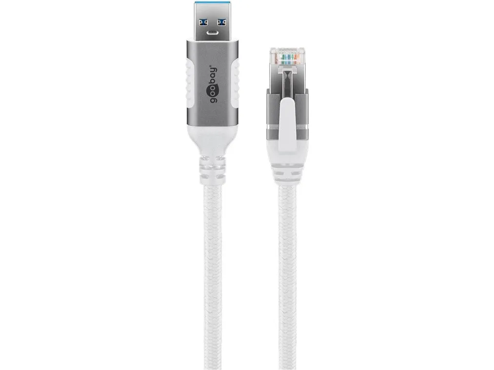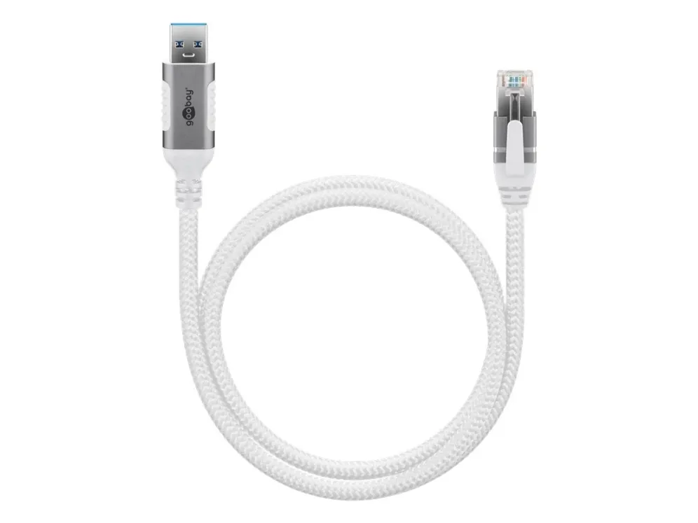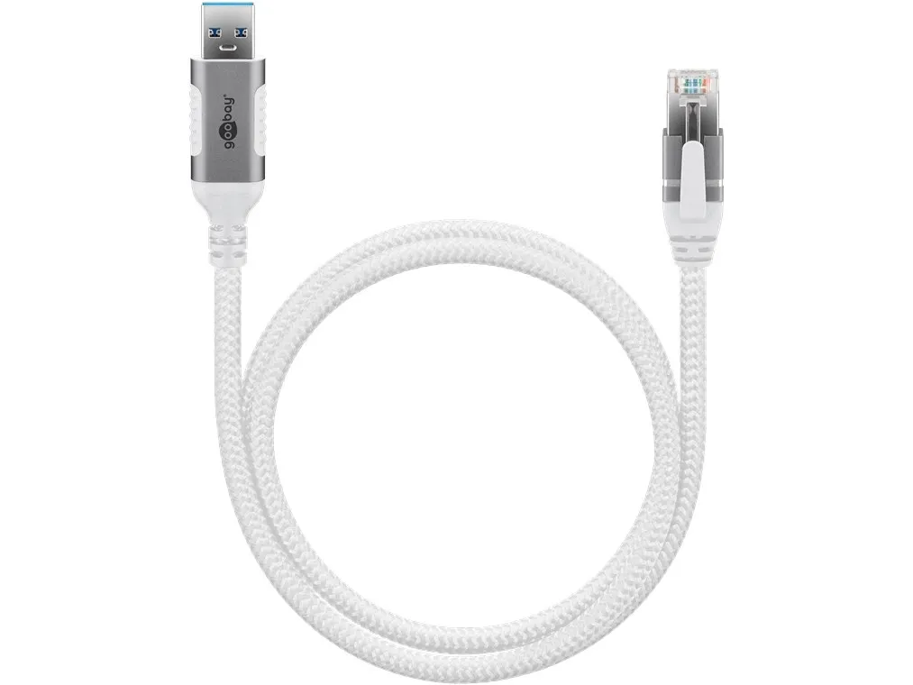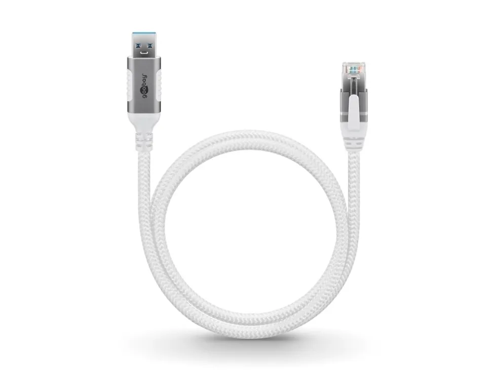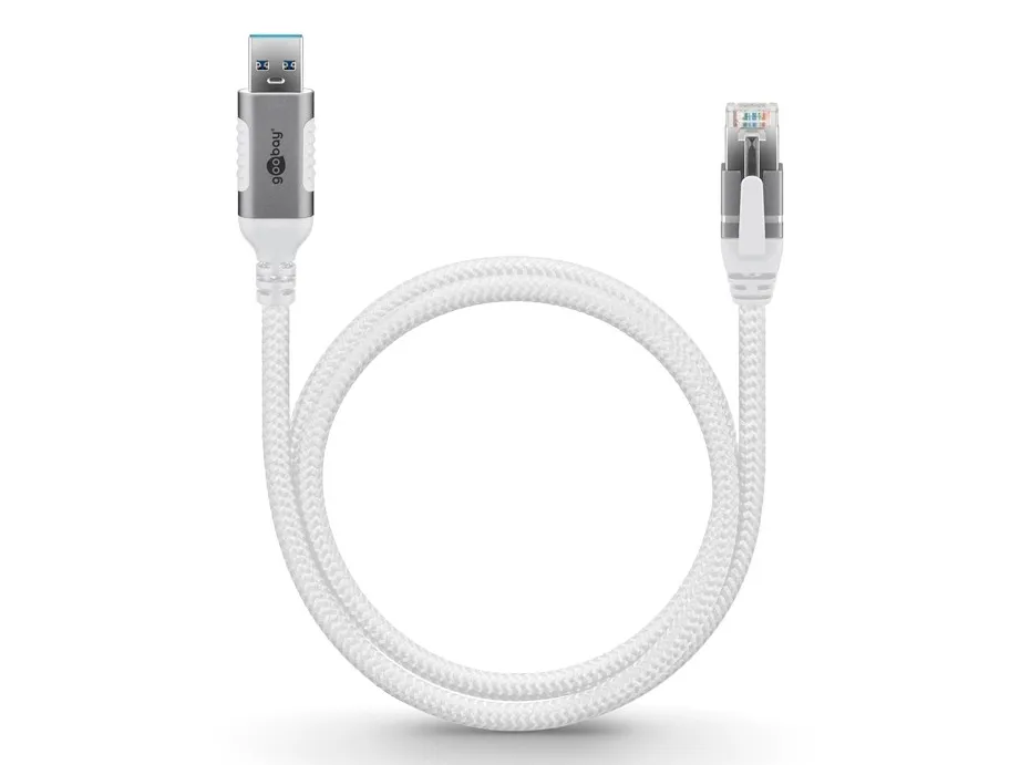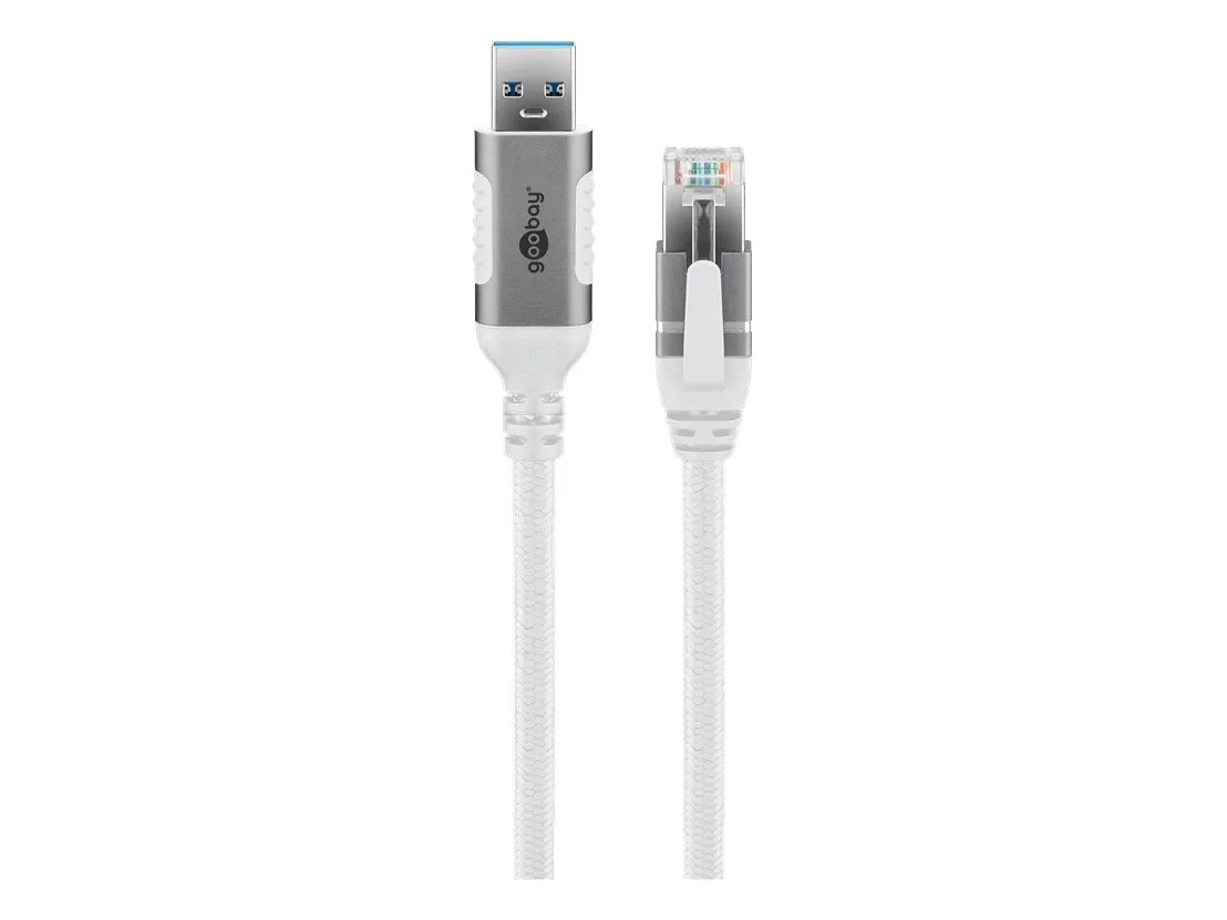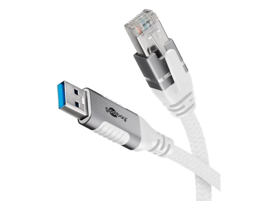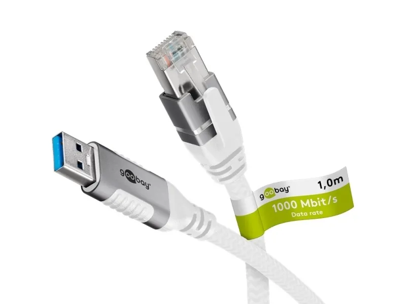 tilslutter router, modem eller netværksswitch til USB-A-porten på en laptop, tablet eller smartphone Kabellængde LAN-kablet muliggør en stabil, kablet internetforbindelse til USB-A-enheder uden deres egen netværksforbindelse Med CAT 6 opnår kablet en overførselshastighed på op til 1 Gbit/s USB-kablets flettede, slidstærke tekstilkappe har en behagelig fornemmelse og er skånsom mod følsomme overflader Robuste metalstik af høj kvalitet med bøjningsbeskyttelse sikrer en særlig lang levetid for CAT 6-kablet USB-A-forbindelsen er kompatibel med notebooks og tablets fra populære producenter som Lenovo, HP eller Dell samt med Windows, macOS og Android og er bagudkompatibel med USB 2.2 Bemærk: Netværkskablet er ikke egnet som et rollover-kabel til spilkonsoller