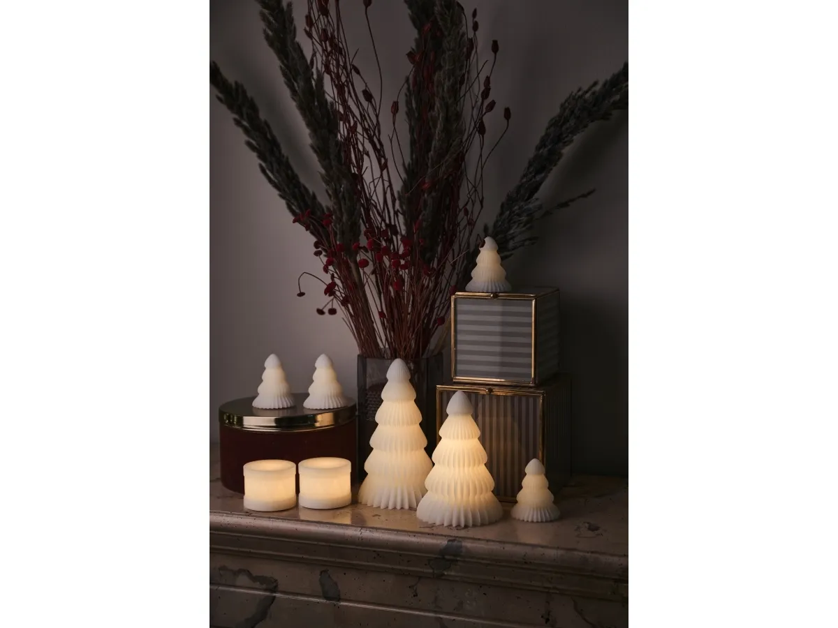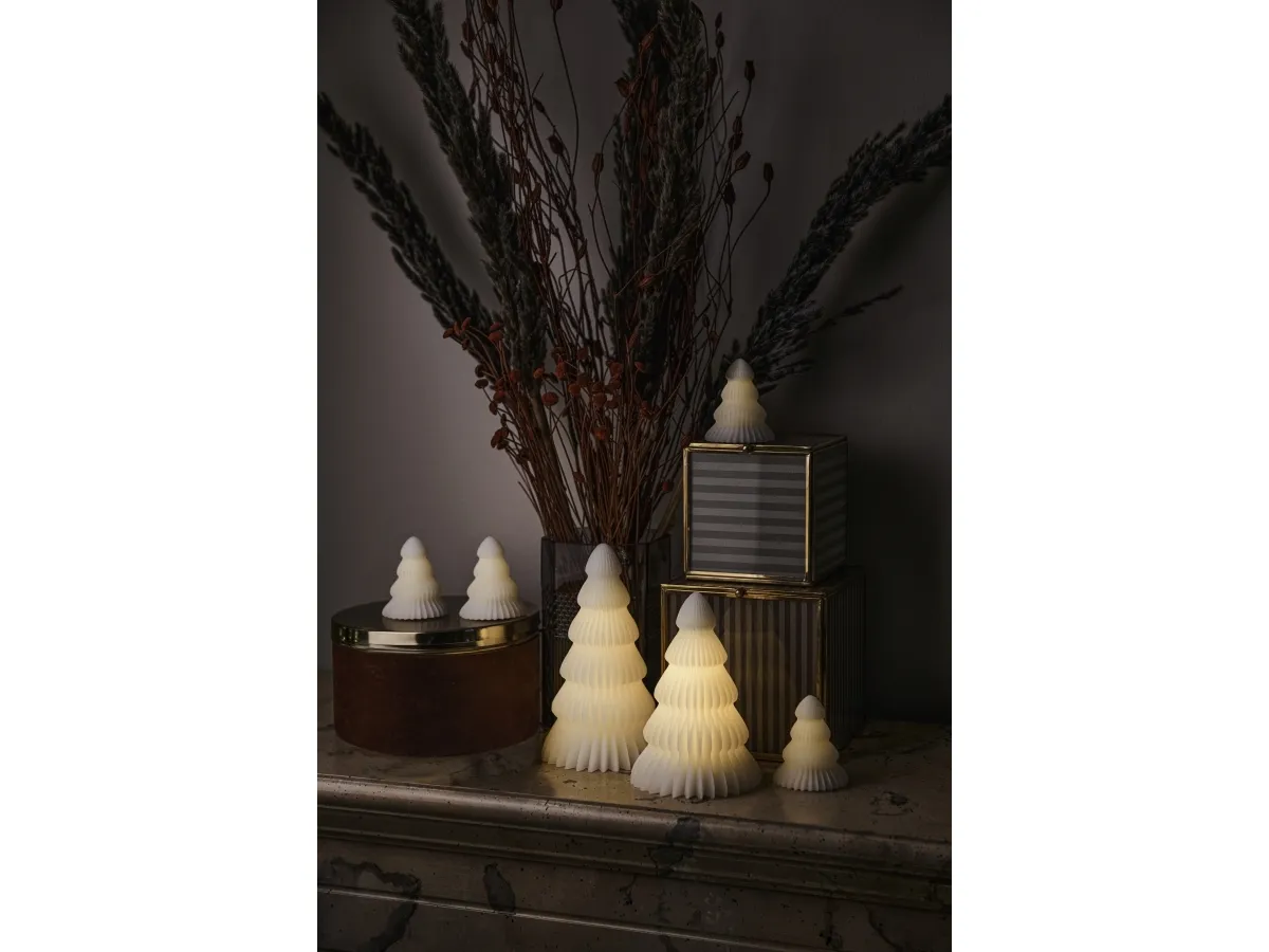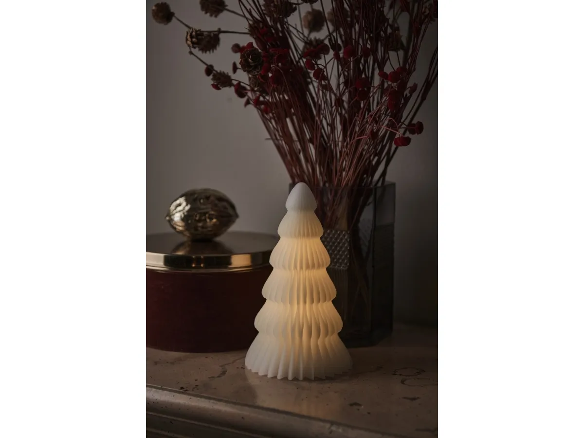 Vores Claire juletræsdekoration er lavet af ægte voks. Når du stryger hænderne ned af dekorationen, vil du mærke dens tynde og fine plisserede detaljer. Dens elegante design er meget lig gamle plisserede juledekorationer. Dens voks føles blød og lækker, hvilket giver en ekstra kvalitetsfølelse.