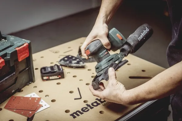 SM 18 LTX BL batteri-multisliber Vibrationsfrit arbejde takket være støjsvag drift Håndgreb med skridsikker softgrip-overflade Enestående brushless-motor for højeste effektivitet ved slibning også i kontinuerlig drift Svingkreds 2,0 mm for højeste overfladekvalitet med en god slibeydelse Trinløs omdrejningsregulering til arbejde med materialerigtigt omdrejningstal Med tekstilstøvsugerpose, der nemt kan tømmes for, til arbejde uden at suger Kan tilsluttes en universalstøvsuger med tilslutningsmuffe 630798000 Aftagelig protektor beskytter tilstødende flader og øger levetiden for slibepladen Med fastgørelsespunkt til værktøjssikringsremme til arbejde i store højder Praktisk multisliber med trekantet og firkantet slibeplade til alsidig slibning af hjørner, kanter og små flader. Behagelig føring tæt på overfladen, også over hovedet, takket være den lave højde.