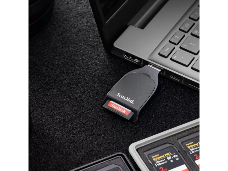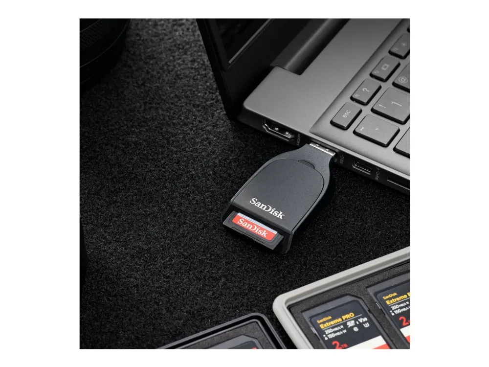 The SanDisk QuickFlow card reader provides a reliable solution for data transfer with its external enclosure design. Featuring the USB 3.2 Gen 1 interface, this device ensures efficient file transfers, making it suitable for various storage needs. Experience convenience and speed with this essential tool for photographers, videographers, and those needing quick access to memory cards.