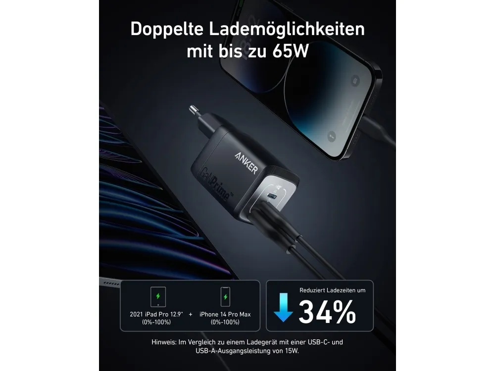 Anker Prime. Charger type: Indoor, Power source type: USB, Charger compatibility: Universal, USB 2.0 ports quantity: 1, USB Type-C ports quantity: 2, Fast charging. Product colour: Black