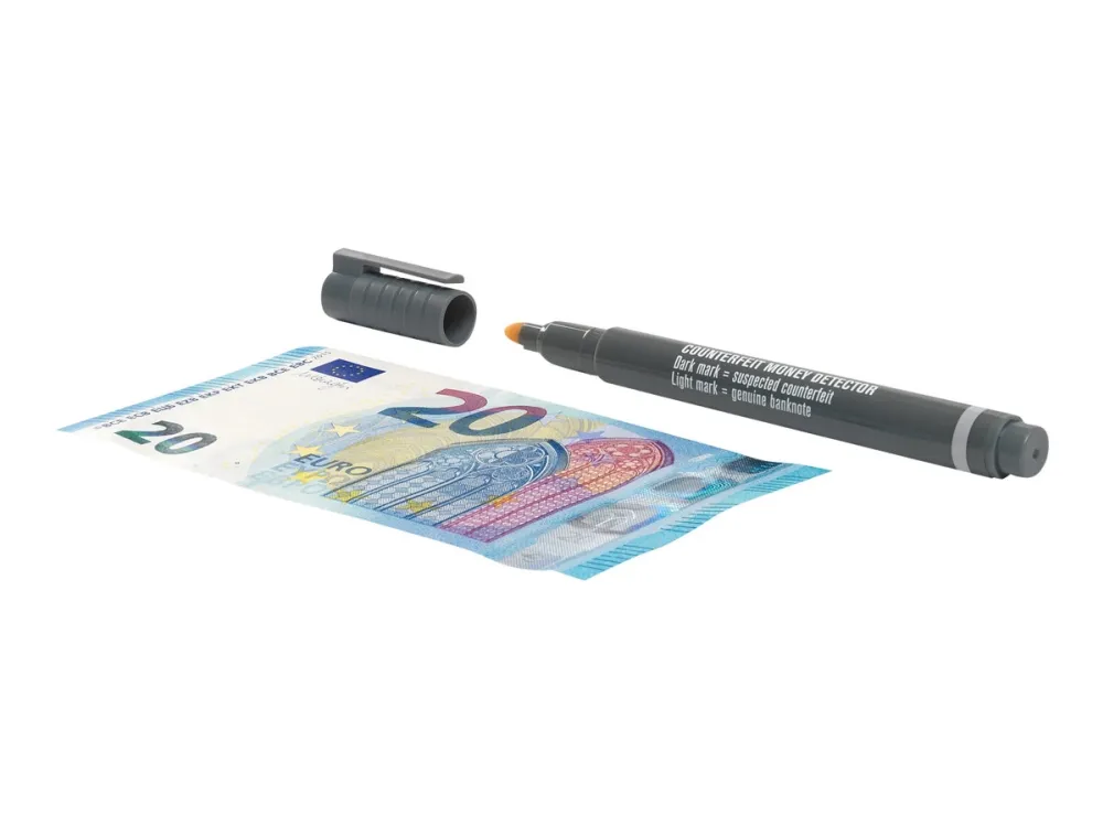 If the created mark on the banknote changes color, then you may conclude that the banknote is fake. If the mark fades and eventually disappears, then the banknote is genuine. The Safescan 30 can be used to test all banknotes and currencies.