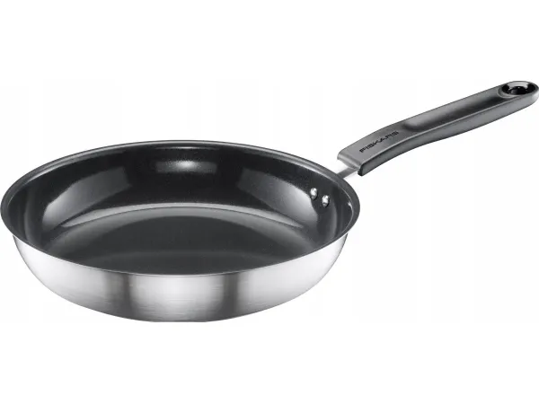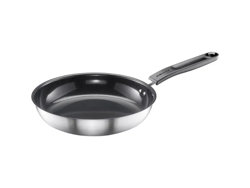 Functional form dyb pande 24 cm Den praktiske Fiskars funktionelle form er perfekt ideal dyb pande til det daglige køkken, især til stegning af æg, grøntsager, fisk og kød. Den 24 cm store panneblok består af holdbart, 90 % genbrugt rustfrit stål og kan anvendes på alle komfurer, herunder induktion. Panden er udstyret med en plastfri, non-stick-behandlet Ceratec™-keramisk belægning, der er let at rengøre og tåler maskinopvask. Stegepander i Functional form er udstyret med et 3-lags-bund for optimal opvarmning og ensartet stegning samt et håndtag, der forbliver kølig og dermed er nemt at gribe. Panden har en maksimal stegetemperatur på 270 ºC og er 150 ºC fast til opskrifter, hvor panden skal skubbes ind i ovnen, hvilket was let tilberedningsproces. Fremstillet i Finland på fabrik, der er certificeret i henhold til ISO 14001.