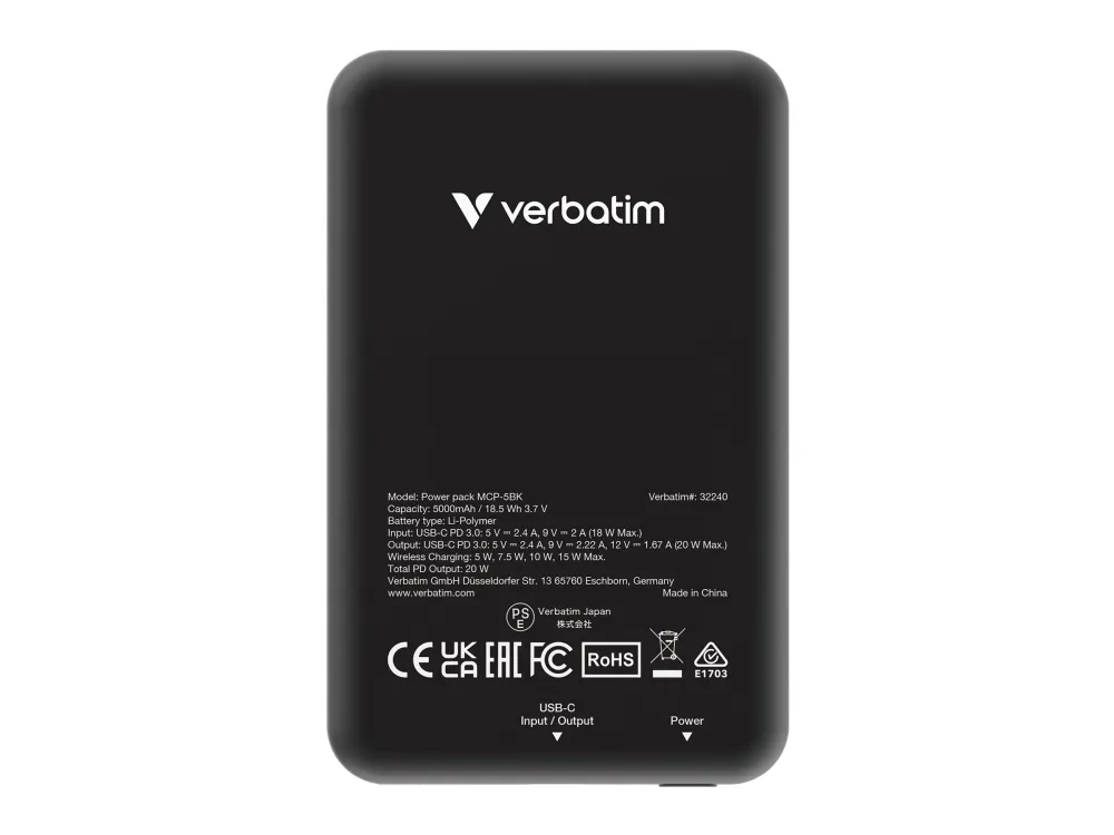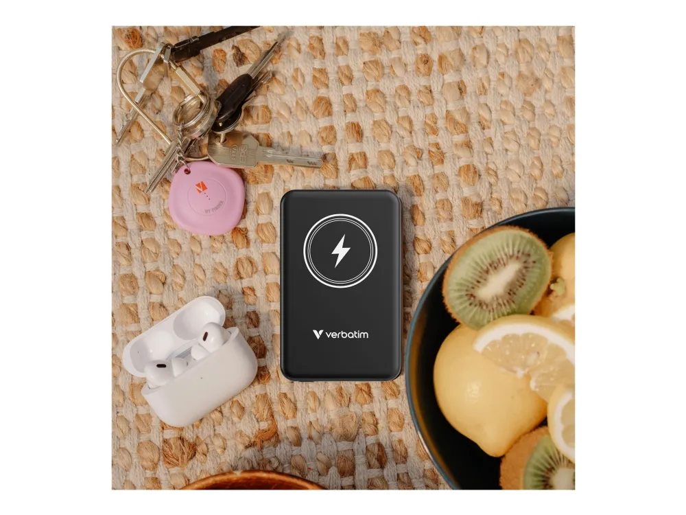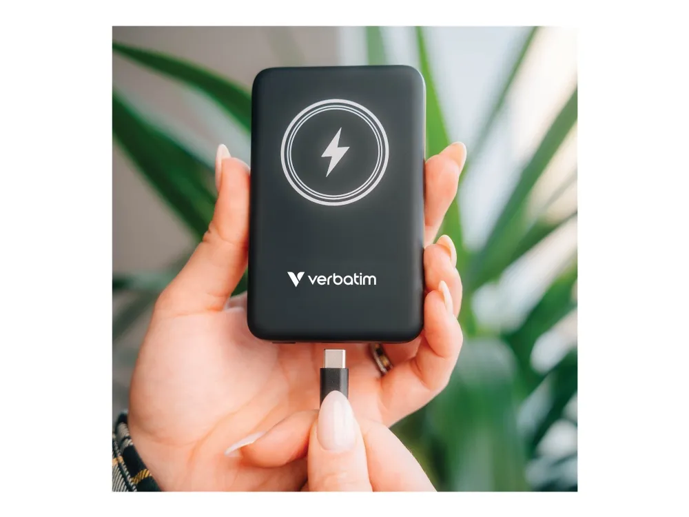 Verbatim Charge 'n' Go - Trådløs nødlader - magnetmontering - Li-pol - 5000 mAh - 20 watt - 2.4 A - Apple Fast Charge, PD 3.0, QC 3.0, Apple 2.4A, USB BC 1.2 (24 pin USB-C) - svart