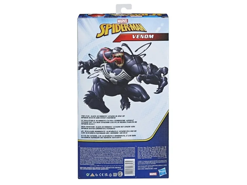 Den onde romvesensymbioten Venom er en av Spider-Mans største fiender! Bli med i Marvel-universet og slyng deg i action og eventyr med Spider-Man! Opplev en verden av mektige superhelter og sterke skurker i spennende historier om det gode mot det onde, med 30 cm høye actionfigurer fra Spider-Man Titan Series Figurene har klassisk design og detaljer, samt flere bøyelige ledd for poserbar lek og moro. Barn kommer til å elske å leke at de slynger seg ut i kamp med denne 30 cm høye Venom-figuren! Copyright 2021 MARVEL. Hasbro og alle tilhørende begreper er varemerker som tilhører Hasbro.