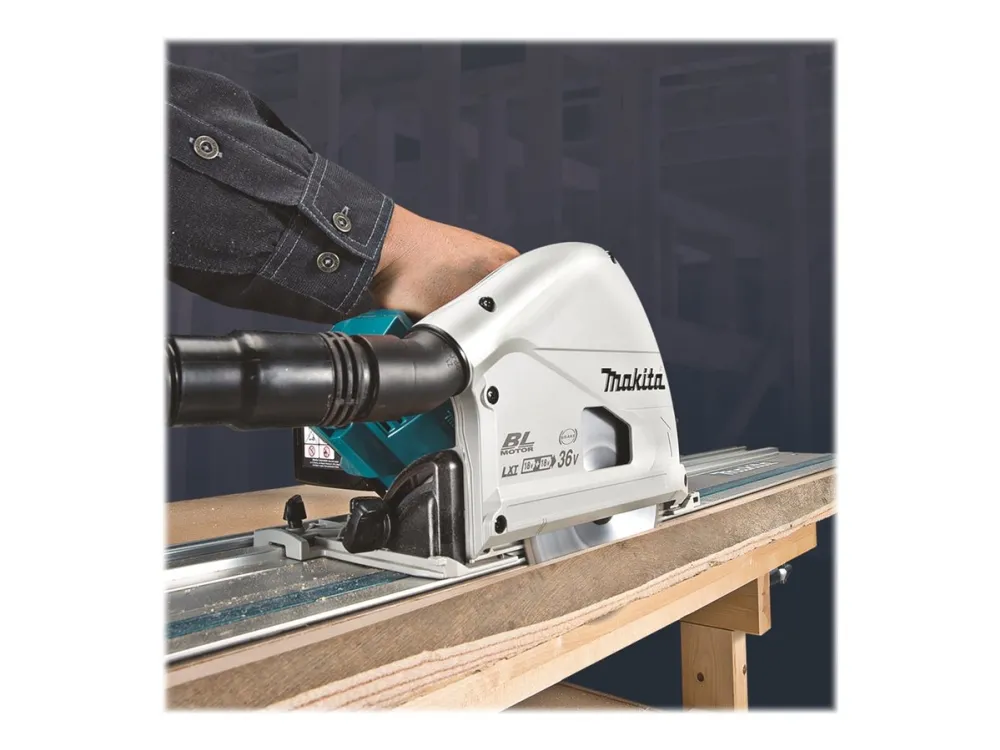 Model DSP600 is a 165mm cordless plunge cut saw powered by two 18V Li-ion batteries in series, and features high power comparable to the corded equivalent.