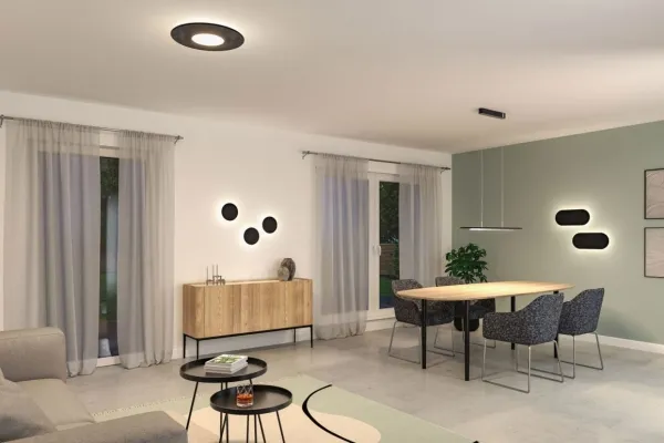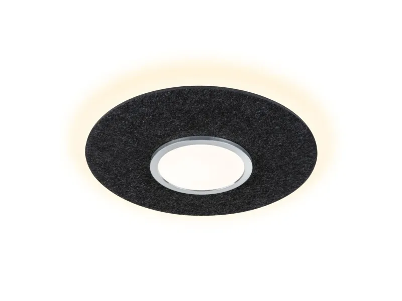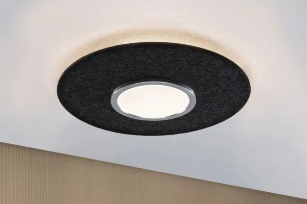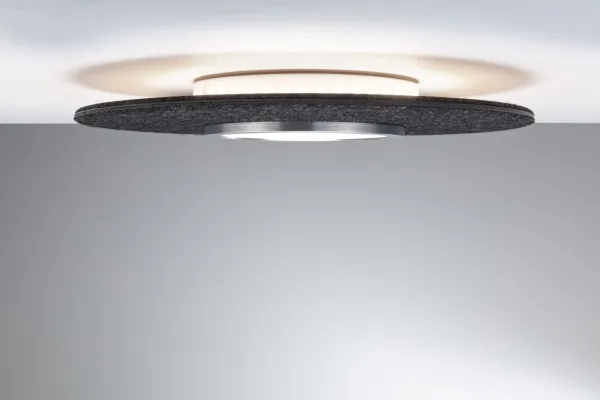 Led-loftslampe Smart Home Zigbe 3.0 Tulga Backlight teknik for endnu mere diskret, næsten svævende lysoptik Farvetemperatur: 2700K - varm-hvid op til 6500K - dagslyshvid Lygter af filt er bæredygtige og støjreducerende Minimalistisk, teknisk reduceret design Bæredygtigt genbrugt materiale (mindst 60 % genbrugt materiale i filt) Kan anvendes med Smart Home gateways, som har et ZigBee interface Kan styres med fjernbetjeningen til Smart Home ZigBee Kan stadig tændes og slukkes via kontakten Den smarte LED-loftslampe Tulga i filt i antracit med 2000lm / 850 lm imponerer ikke kun med sit moderne og enkle design, men skaber også en behagelig atmosfære og reducerer forstyrrende baggrundsstøj. Den består desuden af bæredygtigt genbrugt materiale. Backlight-teknikken tryller en særlig stemning og giver loftslampen et næsten svævende lyslook. Via Tunable White-funktionen kan lysfarven indstilles alt efter behov: Fra en dagslyshvid belysning til en mere varmhvid afslapningsbelysning. Lamperne er ZigBee 3.0-kompatible. ZigBee 3.0 er en radiotransmissionsprotokol, der forbinder enheder fra forskellige producenter med hinanden.