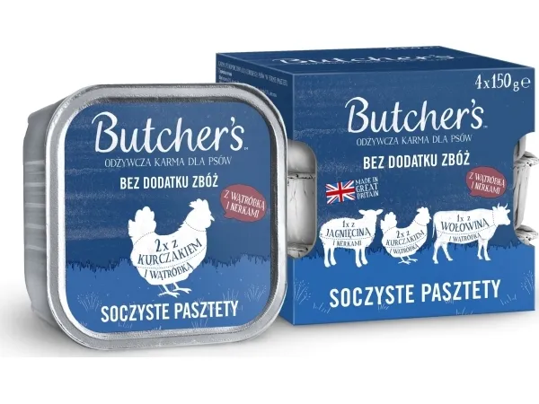 Butcher's Original blanding av smaker saftige pates med lever eller nyrer hundemat 4 x 150g