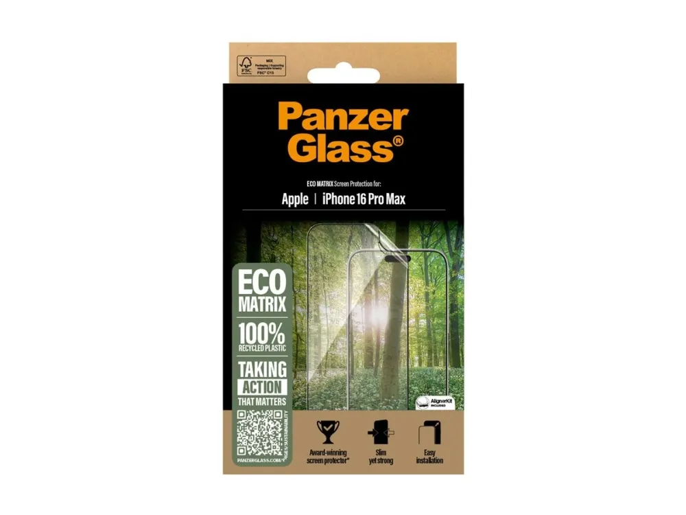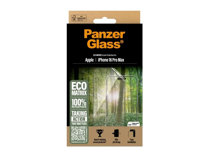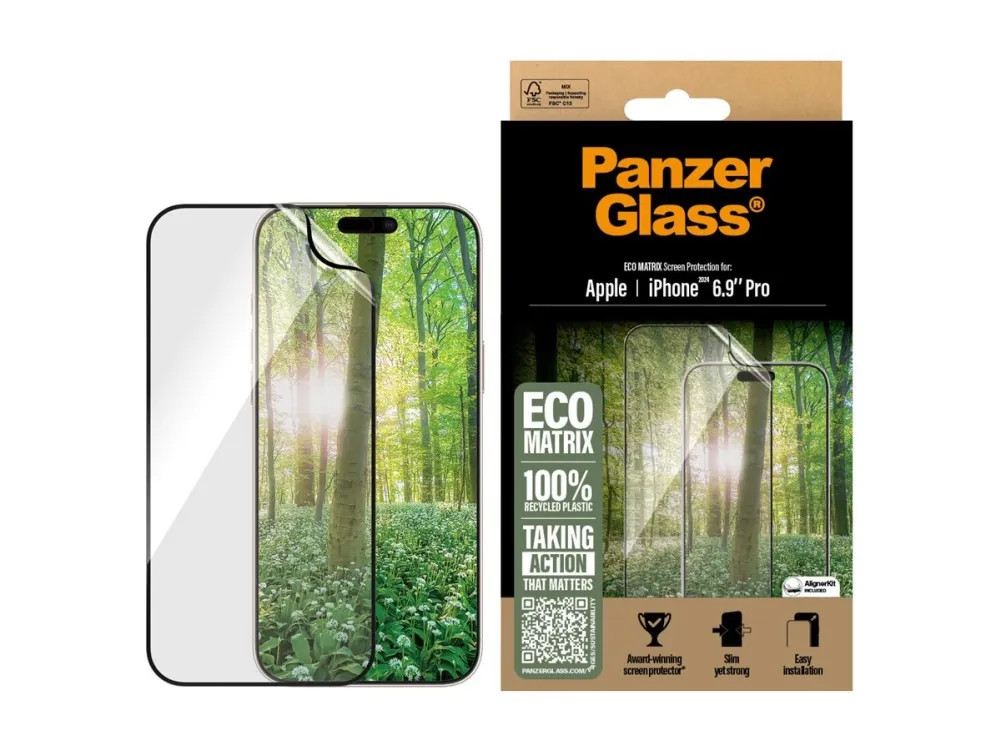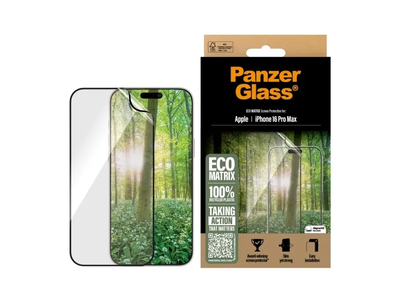 We need change. And the award-winning ECO MATRIX screen protector from PanzerGlass is change. It is made of 100% recycled plastic. It is designed to prolong the lifetime of your phone. AND it keeps your screen safe from accidental bumps, crushing falls and other hazards of everyday life.?This is one way to work towards a more sustainable future. Another is to use less packaging: In 2024, we reduced the amount of paper in our PanzerGlass core product packaging design by an average of 66 So, of course, this product comes in a recyclable FSC-certified box. And if you're worried about fingerprint readability, you can rest easy: The screen protector ensures 100% compatibility with your screen's ultrasonic fingerprint reader, so you can be sure that your phone unlocks smoothly every time. ECO MATRIX is also here to protect the world's wildlife and reduce plastic waste in nature. To this end, PanzerGlass has teamed up with non-profit organization The Perfect World Foundation to support "Project Ocean". For each ECO MATRIX sold, PanzerGlass will make a donation to the project, dedicated to protecting marine life, for instance by reducing the amount of plastic and ghost nets that end up in our oceans.? ECO MATRIX comes with an AlignerKit that makes installation a piece of cake (seriously!), and to make it even easier, we've included step-by-step instructions as well as a QR code for quick access to our online how-to video. And the look? Well, it is SO featherweight, SO thin and SO clear that you'll hardly notice it's there at all … at least not until you bump your phone screen against a sharp-edged table corner or scratch it on the metal-sharp keys in your pocket. This may not happen, but if it does, you'll regret not having clicked "add to cart".? The screen protector is Ultra-Wide Fit, meaning it covers the front surface of your phone to provide superb screen protection and a complete screen view. It even leaves a little room around the edges for case from CARE by PanzerGlass . And if you want extra protection, combine the screen protector and case with PanzerGlass PicturePerfect or Hoops . *Reduction from 2022-2024 measured by comparing selected products from the PanzerGlass core range.