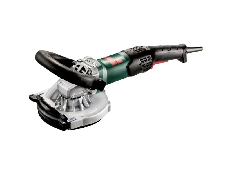 RSEV 19-125 RT renoveringssliber Til effektiv slibning og fjernelse af beton, gulvbelægning og belægninger med diamantslibere Maksimal produktivitet med 1900 watt stærk Metabo Marathon-motor med lav vægt Højt drejningsmoment og overbelastningssikring til krævende anvendelser under vedvarende drift Lav vægt, ideal til slibning i væg- og loftsområdet Perfekt ergonomi med et slankt håndgreb, der giver maksimal kontrol og let arbejde over hovedet Arbejde tæt på kanten, kan klappes op takket være segmentet, der ikke kan tabes Optimale udluftningsresultater: Affjedret børstekrans på beskyttelseskappen, der tilpasser sig enhver overflade og segmenthøjde Værktøjsløst indstilleligt bøjlegreb for en sikker og ensartet føring ved slibning Vario-Tacho-Constamatic (VTC) -helperiodeelektronik med drejeknap: Til arbejde med materialerigtigt omdrejningstal, der forbliver konstant under belastning Elektronisk softstart, så man kan køre gnidningsfrit Sikring mod genstart: Forhindrer utilsigtet start efter strømafbrydelse Metabo S-automatic sikkerhedskobling: Mekanisk frakobling af drevet ved blokering af værktøjet for sikkert arbejde Tilslutning til støvopsugning med diameter 35/41 mm