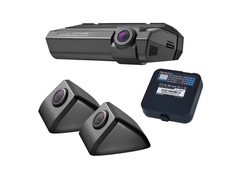 Alpine DVR-F790 dashcam kit med to sidekameraer - Eliminerer alle blinde vinkler Dette komplette sæt fra Alpine er perfekt til fx "tungvogn" varebiler mm. til at Eliminerer alle blinde vinkler. Sættet er ideelt til at optage hvad der forgår rundt om køretøjet. Samt at dokumentér indbrud eller ansvar ved færdselsuheld o.l. Sættet indeholder: