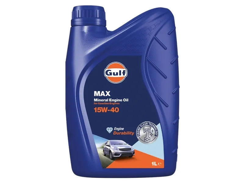 Gulf MAX 15W-40 motorolie til personbiler - 1 liter Gulf MAX Plus 15W-40 er en generation af personbilsmotorolier udviklet til de nyeste højtydende personbiler og lette erhvervskøretøjer, der drives af benzin-og dieselmotorer. Den avancerede additivteknologi anvendt i Gulf MAX Plus 15W-40 gør det muligt at overgå kravene+ til præstation fra de førende bilfabrikanter og globale branchestandarder. Godkendt til: API CF. Opfylder følgende specifikationer: API SL.