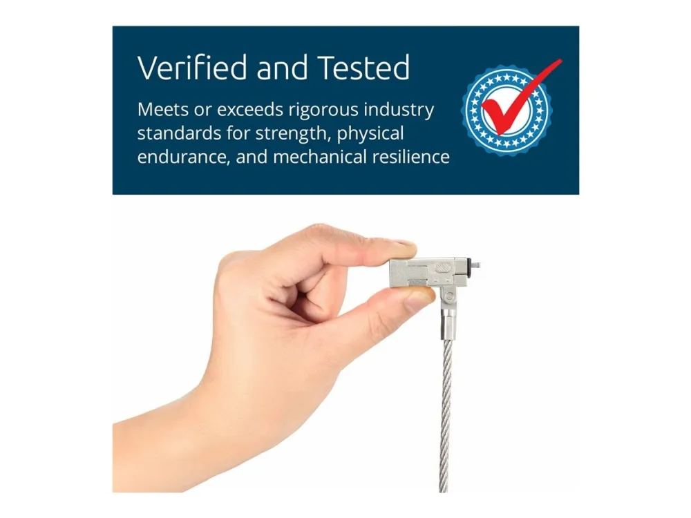 The Kensington Slim NanoSaver 2.0 EQ is designed to provide dependable security for notebooks and tablet PCs. Constructed from stainless steel, this security cable lock ensures durability while offering theft protection with its keyed locking method. The 5 mm Keying System provides an effective solution to safeguard devices, allowing users to easily lock and unlock with a key.
