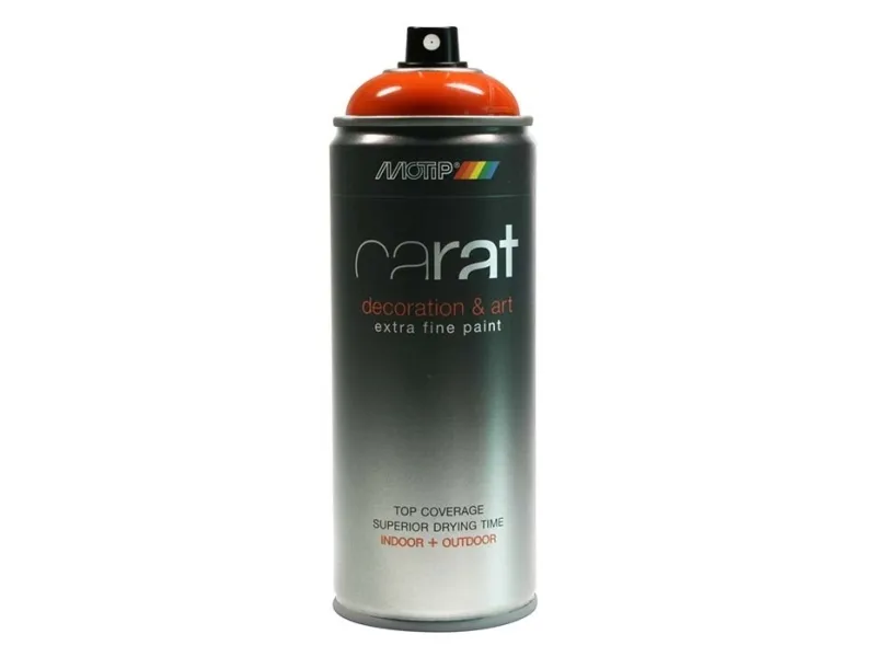 Motip Carat traffic orangeMotip Carat er en højkvalitets dekorativ akryllak, med egenskaberne som en bil lak. Dog med den fordel, at påføringen er så brugervenlig, at alle nu kan få glæde af fordelene ved en spraydåse.EgenskaberFremragende dækkeevneHoldbar farve og glansRidsefri og slidstærkFremragende lodret stabilitet så næsten ingen dryp på spraydåsenModstandsdygtig over for kemikalier og vejrpåvirkningerFremragende vedhæftning