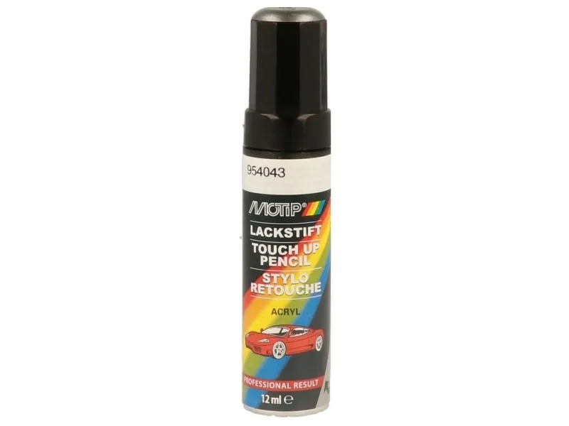 Lakstift til reparation eller forskønnelse af små pletter, ridser, m.m.Akryl autolak fra Motip er en reparationslak i høj kvalitet, som er baseret på bilens originale farvekode. Reparationslakken forskønner og reparerer bildele.Autolack Acryl fra Motip er et kompakt system, der består af ikke-metalliske og metalliske farver, og er tilgængelig i en spray med 400 ml eller en lakstift med 12 ml.Specifikationer:Farvekode: 954043Indhold: 12 mlType: StiftMærke: Motip