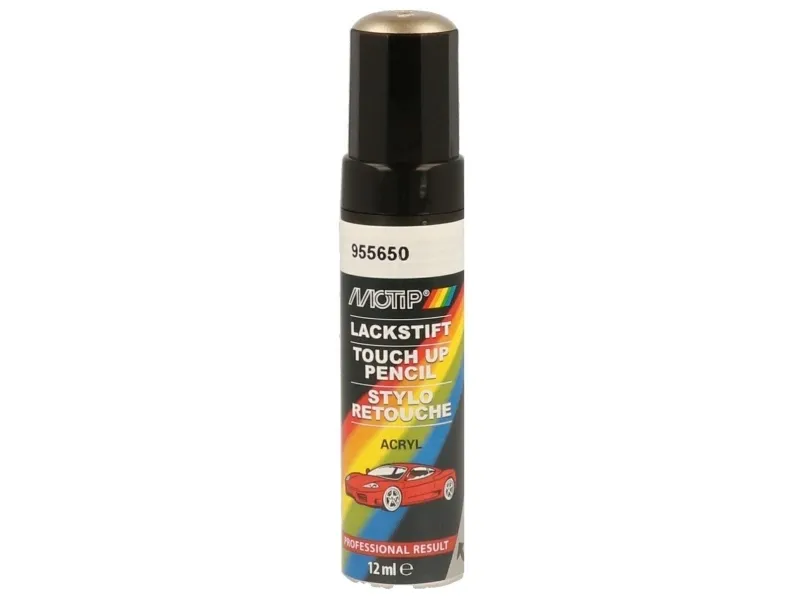 Lakstift til reparation eller forskønnelse af små pletter, ridser, m.m. Akryl autolak fra Motip er en reparationslak i høj kvalitet, som er baseret på bilens originale farvekode. Reparationslakken forskønner og reparerer bildele. Autolack Acryl fra Motip er et kompakt system, der består af ikke-metalliske og metalliske farver, og er tilgængelig i en spray med 400 ml eller en lakstift med 12 ml. Specifikationer: Farvekode: 955650 Indhold: 12 ml Type: Stift Mærke: Motip