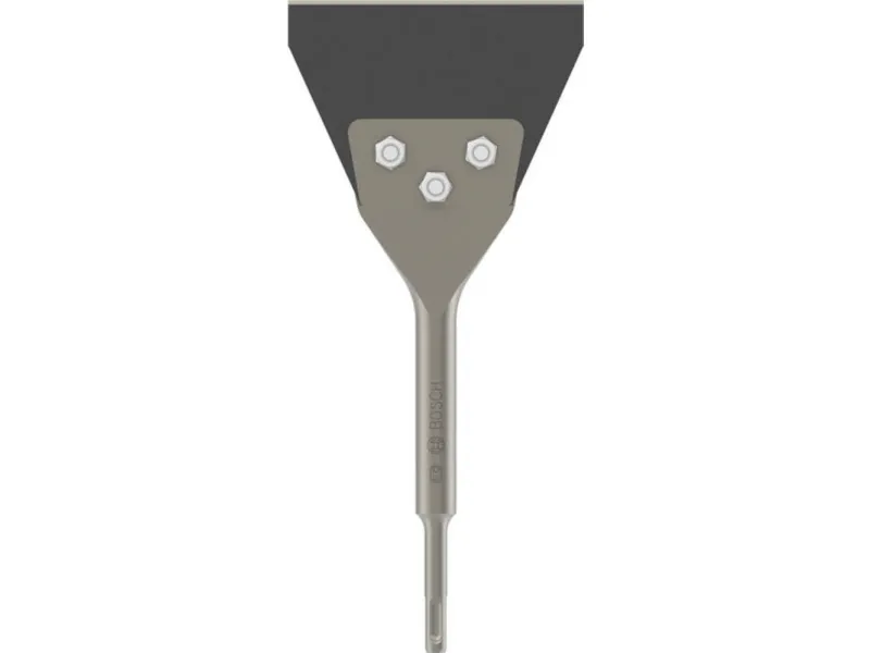PRO SDS plus Floor Scraper, 130 x 290 mm Hurtig fjernelse af fliser! Bred snitkant for højere materialefjernelse er du renoverer og har brug for en pålidelig mejsel for effektivt at fjerne badeværelse og køkkenfliser? Så er PRO SDS plus Floor Scraper det rigtige valg. Dermed kan du nemt og hurtigt fjerne både fliser og mørtel, tæpper, tapeter og linoleum. Vi har udviklet PRO SDS plus Floor Scraper til renoverere, der hurtigt skal fjerne gulv- og vægfliser. Vi har fremstillet 130 mm-bladet af robust stål, så det holder længe og fjerner mere materiale end mindre blade. Bladet fastgøres på skaftet med skruer og møtrikker for at reducere vibrationer. Denne alsidige mejsel kan også skrabe mørtel, tæppe, tapeter og linoleum ud.