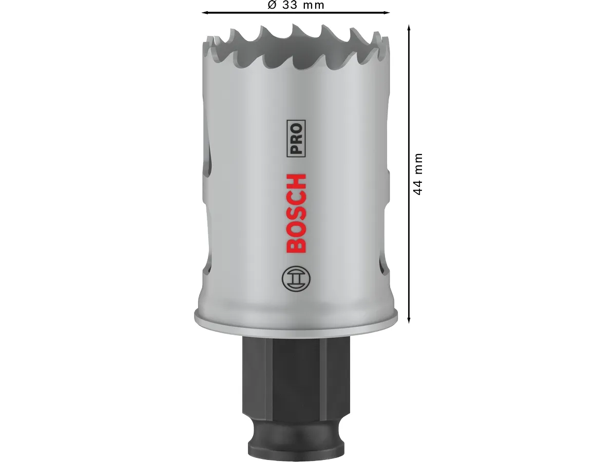 PR. Materiale. Pc Plus hulsav, 33 mm Lang levetid ved skæring af huller i forskellige materialer! Højhastighedsstål med 8 % kobolt for lang levetid og fremragende ydeevne til elektrikere og VVS-installatører er hulsave af uvurderlig værdi til installation af rør, el-tavler og indbygningslamper. Ideelt set har du kun en slags hulsav til alle de udfordringer og materialer, som den indvendige udbygning medfører. Løsningen: PRO multi-materialet. PRO multi-materiale-hulsav har en forbedret tandform til hurtige og glatte snit. HSS-legering med koboltindhold sørger for lang levetid. Den er særlig velegnet til stålbeklædninger og tørvægvægge. Med Power Change plus adapteren kan hulsave og forborer hurtigt skiftes ud, og borekerner fjernes igen.