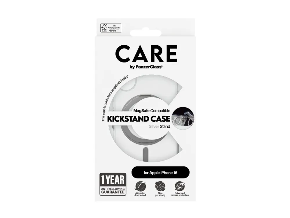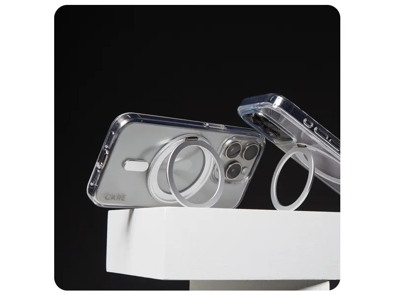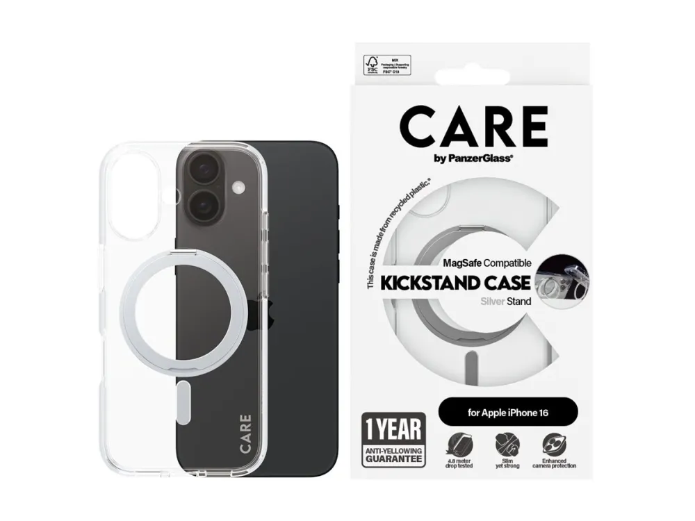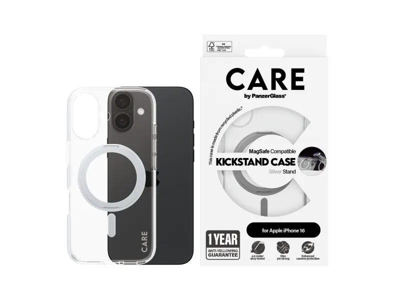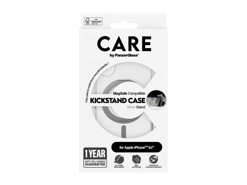 One of our most anticipated new products is finally available! Every angle and corner has been drop-tested at 4.8 meters. Made from recycled plastic, this case offers phenomenal protection, wireless charging, and MagSafe compatibility, and includes our 1 Year Anti-Yellowing guarantee – no questions asked. This slim, light-weight protective kickstand case offers everything you want is a phone case. It's practical design features a versatile kickstand for hands-free viewing, both vertical and horizontal. Now you – or your kids – can FaceTime, stream series, watch movies, and do yoga with ease, any where, any time … and hands free. It even includes enhanced camera protection to safeguard your selfies and photos. DARE TO CARE CARE is a playful and protective international tech and lifestyle brand featuring a range of products created using the highest quality materials and influenced by fashion, art, and music. We care about people and the world we live in. We care about sustainability and self-expression. And we care about tech and extending its lifetime. So protect your tech in style and show the world you CARE.