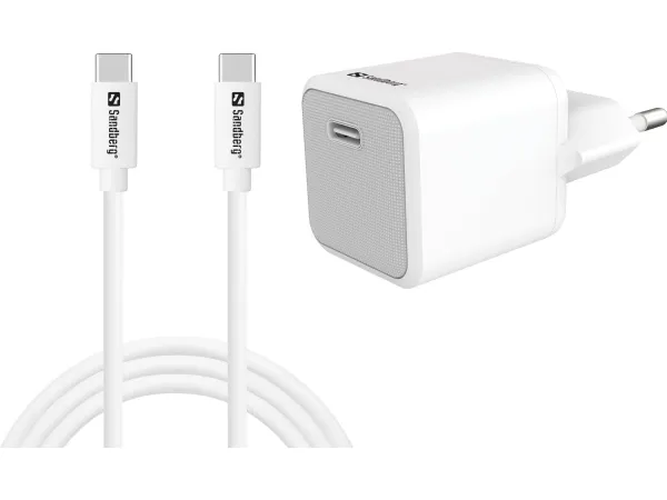 Sandberg USB-C AC charger +USB-C>C 1M is a handy charger for sockets. It is equipped with a USB-C 20W PD output, so you can charge smartphones and tablets at full speed.