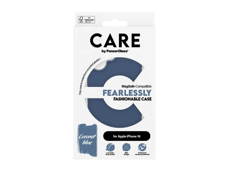 CARE by PanzerGlass - Baksidedeksel for mobiltelefon - MagSafe-samsvar - oleofobisk belegg, termoplast-polyuretan (TPU), polykarbonat (PC) - coronet blå - for Apple iPhone 16