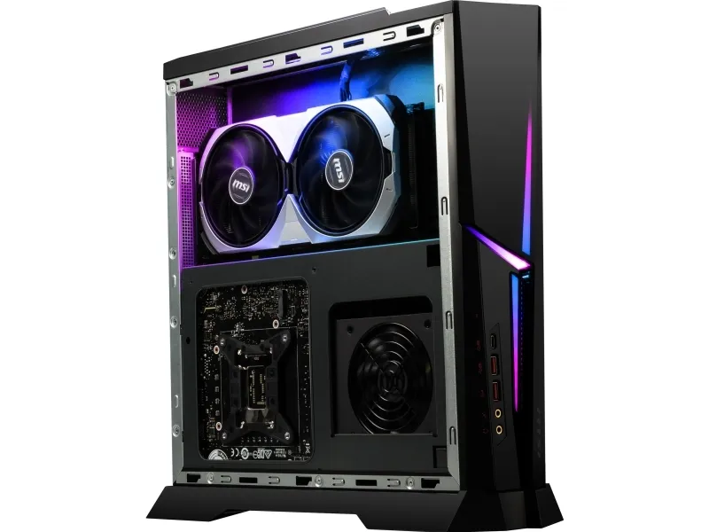 The MSI MPG Trident AS 14NUD5 is designed to deliver powerful performance for gaming and productivity in a compact desktop form factor. Featuring a 14th Generation Intel Core i5 processor with a clock speed of 2.5 GHz and a maximum turbo speed of 4.7 GHz, this system is built to handle demanding tasks with ease. Coupled with 16 GB of DDR5 RAM and a 1 TB NVMe SSD, users can experience rapid load times and efficient multitasking capabilities. Enhancing the gaming experience is the NVIDIA GeForce RTX 4060 Ti graphics card, providing vibrant visuals and smooth frame rates. With integrated audio featuring 7.1 channel surround sound and high definition audio codec support, the MSI MPG Trident AS 14NUD5 ensures an immersive sound experience. Its Silent Storm Cooling 3 and air cooling solutions help maintain optimal temperatures during extended use, making it an excellent choice for gamers and professionals alike.