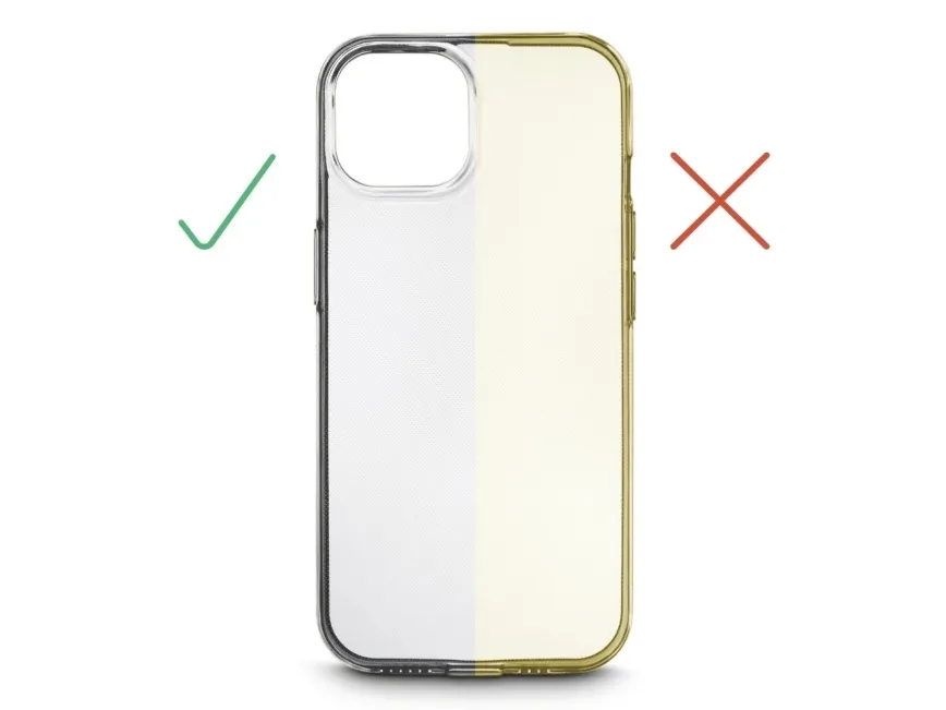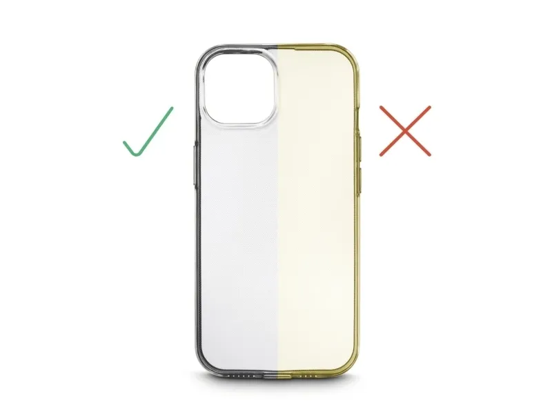 Gennemsigtigt mobiltelefon-cover uden gulner: Fornøjelse på coveret, fordi den specielle materialesammensætning forhindrer gullig misfarvning