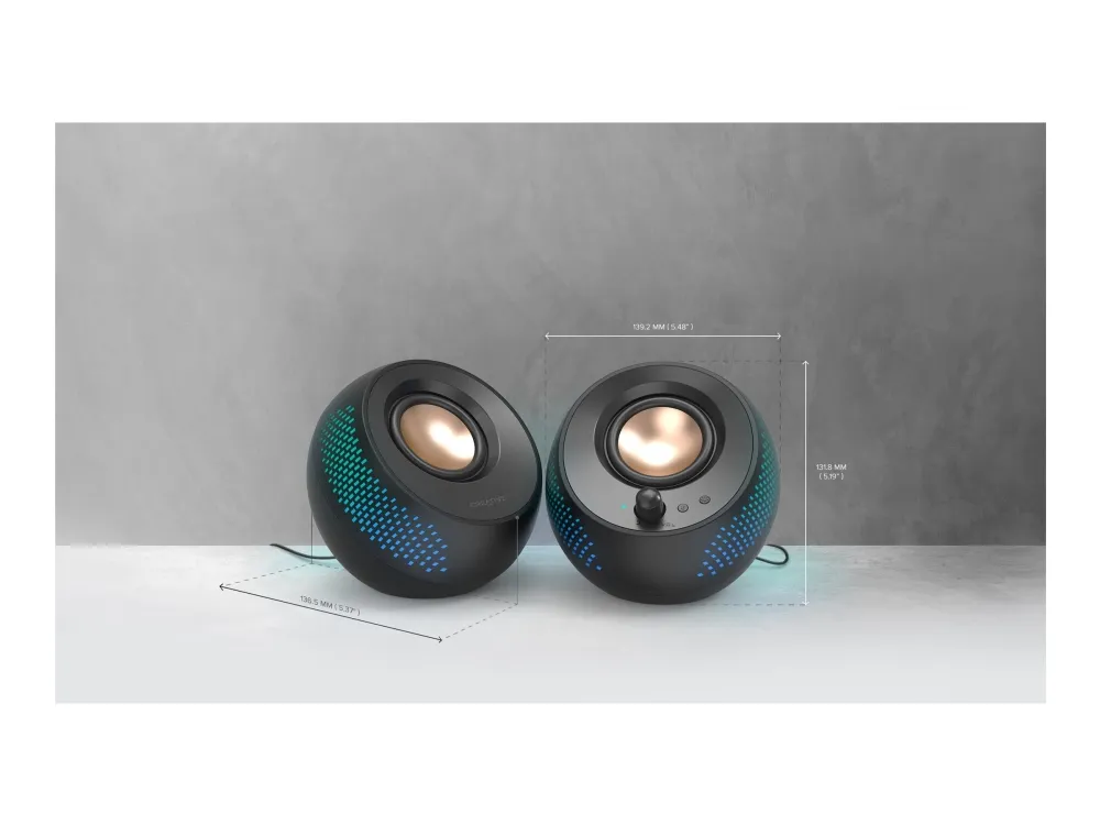 The Creative Pebble X speakers are a testament to Creative Technology's commitment to audio excellence and innovative design. These speakers are designed specifically for PC users, offering a blend of aesthetic appeal with RGB lighting and superior sound quality. With an integrated amplifier providing 15 W of continuous power and up to 30 W at peak, the Pebble X ensures your music, games, and videos sound better than ever. Connectivity is a breeze, thanks to Bluetooth 5.3 and USB-C, along with various input options for headphones and microphones. The inclusion of BassFlex, Dialog+, and Sound Blaster Acoustic Engine technologies further enhances the audio experience, delivering clear, rich, and immersive sound across a wide frequency range. Whether for work or leisure, the Creative Pebble X speakers are designed to impress.