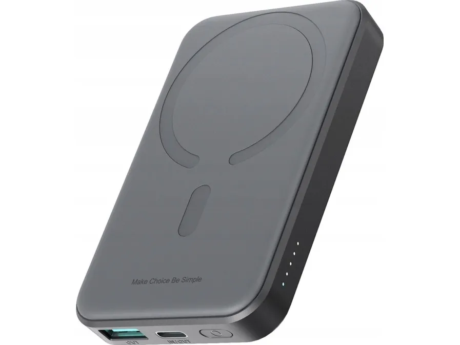 Powerbank Joyroom JR-W020 Mini 5000mAh USB-A USB-C induktiv 20W - svart + USB-C / USB-C-kabel