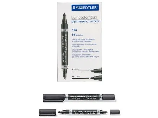 This is a marker featuring both a fine and wide tip - Lumocolor duo writes on each surface, permanent and without drying up. The marker can be left uncapped for days without drying up.