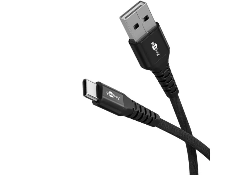 15 W, 3 A, elegant og ekstra robust tilslutningskabel til enheder med USB-A- eller USB-C™-port Robust opladnings- og datakabel med tekstilbelagt silikonehylster for maksimal fleksibilitet og absolut beskyttelse mod kabelbrud USB-C™-ladekablet muliggør superhurtig opladning med maks. 15 W og højhastighedsdataoverførsel med op til 480 Mbit/s De forstærkede metalstik med knækbeskyttelse er designet til over 10.000 bøjningscyklusser, hvilket gør USB-C™ til USB-C™-opladerkablet ekstremt holdbart USB-forlængerens flettede, slidstærke tekstilkappe har en behagelig fornemmelse og er skånsom mod følsomme overflader USB-kablet er kompatibelt med smartphones, tablets og laptops fra populære producenter og understøtter også opladningsfunktionen på Apple MacBook Med en praktisk længde på 1 m sikrer Goobay USB-C™-opladningskablet en generøs rækkevidde