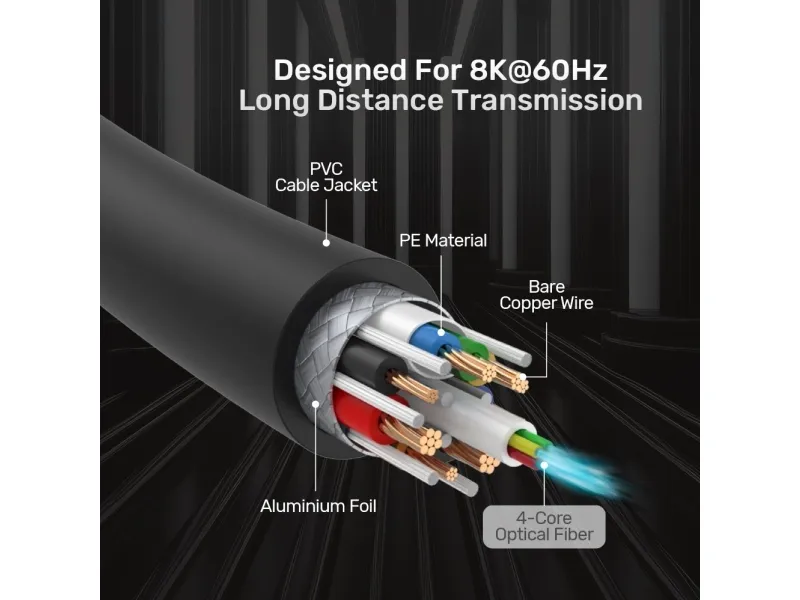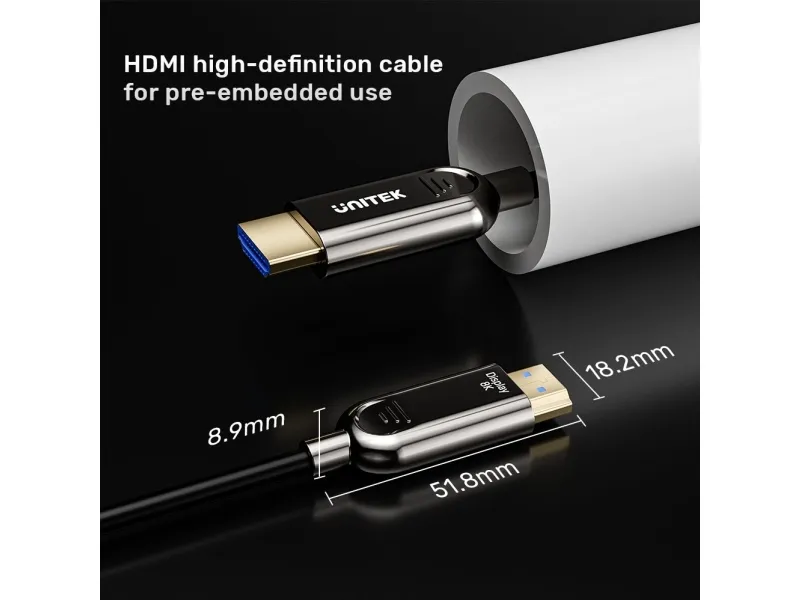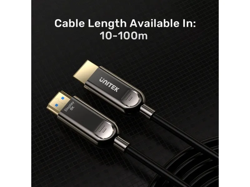 Experience connectivity with the Unitek HDMI cable designed for performance. This fiber optic cable features a slim design with a 4.6 mm outer diameter, making it flexible and easy to manage in tight spaces. Enjoy clarity with 8K60Hz support and a transmission rate of up to 48 Gbps, ensuring stunning visuals and immersive audio for your home entertainment setup. Equipped with technology features including Variable Refresh Rate (VRR), Quick Media Switching (QMS), and Enhanced Audio Return Channel (eARC), this HDMI cable supports seamless switching between media while maintaining audio quality. With 32 audio channels and support for Dynamic HDR and colorimetry BT.2020, the Unitek HDMI cable is compliant with HDCP 2.2 and 2.3 standards, delivering performance for all your high-definition content.