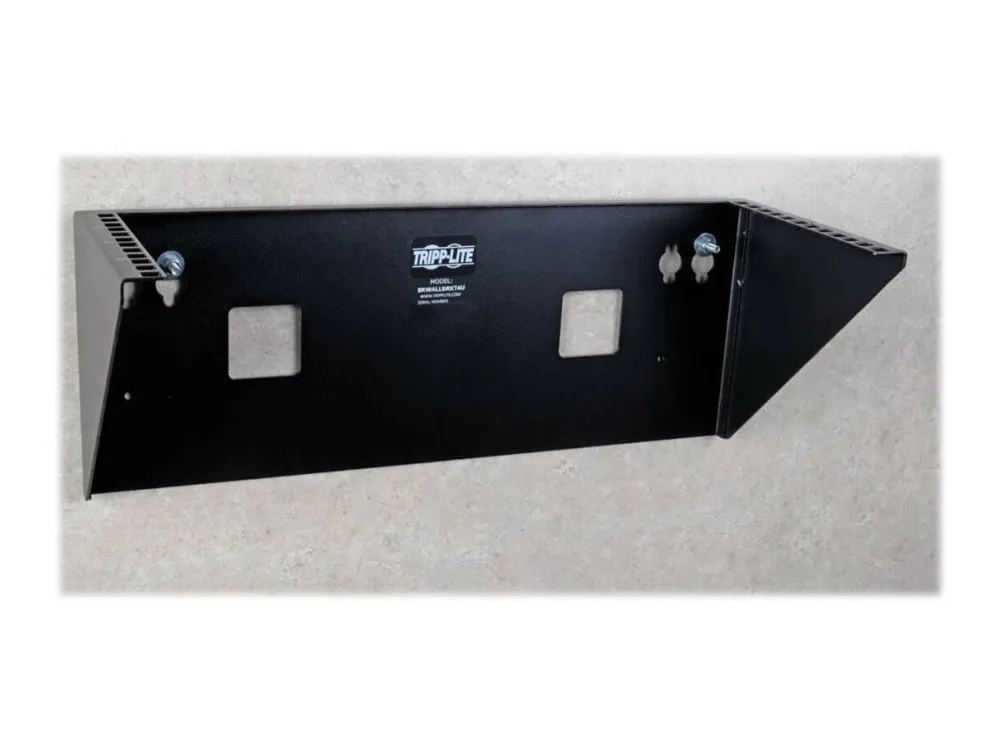 Use the included hardware to attach your 4U rack-mount equipment, such as a network switch or UPS system, to the steel bracket's rails. Its maximum load capacity is 79 kgs. Connected equipment hangs flush against the wall, allowing you unrestricted access. The SRWALLBRKT4U is compatible with most EIA-standard 19-inch two-post rack equipment.