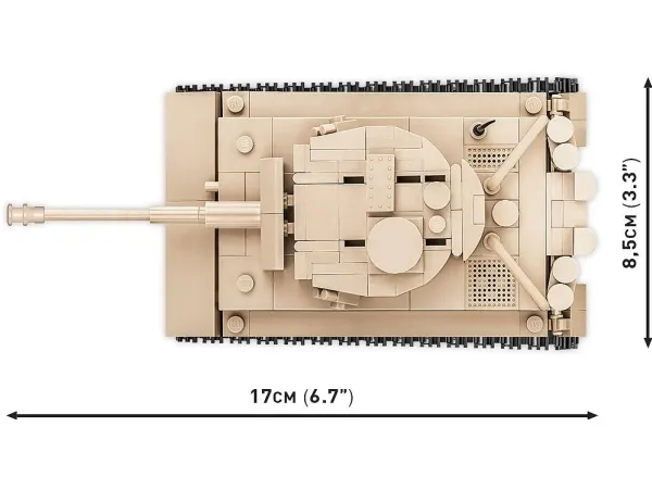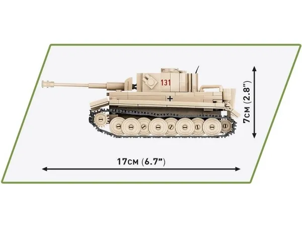 The COBI block Tiger 131 has been reproduced with attention to detail in a 1:48 scale model. It has movable elements such as: turret and gun barrel, as well as rotating wheels and tracks. The advantage of the set consisting of 350 elements is a solid structure that faithfully reflects the original shapes of its historical inspiration. Our miniature tank has been covered with high-quality prints that do not wear off. The museum Tiger 131 from Bovington completes our collection of miniature tanks made in 1:48 scale modeling. Thanks to our small series, your collection will fit anywhere! Our tanks are perfect for mature enthusiasts of military technology and everyone, regardless of age, who loves history and block construction!