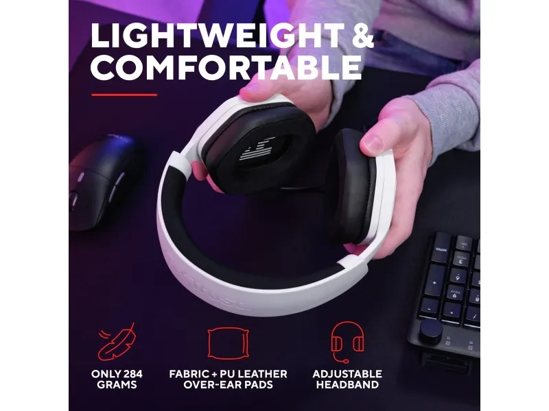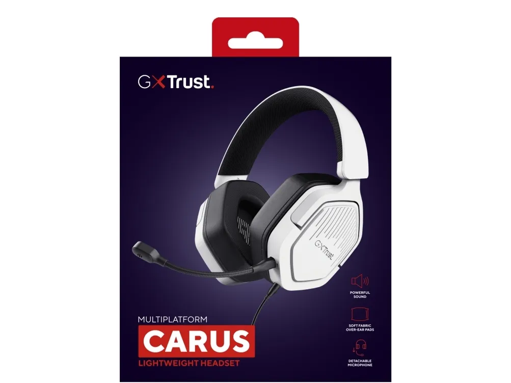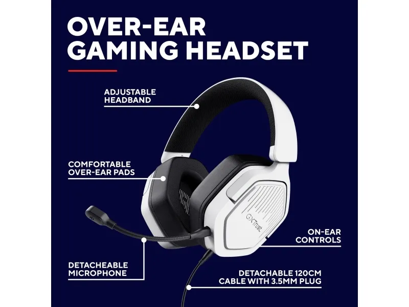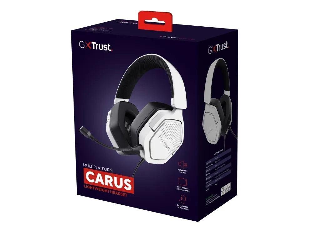 The Trust GXT 492W Carus headset delivers immersive stereo sound for an enhanced gaming experience. With a frequency response range of 20 - 20,000 Hz, this headset ensures rich audio quality while maintaining clarity through its 50 mm diaphragm and neodymium magnet. The adjustable headband provides a comfortable fit, and swivel earcups allow for easy storage and portability. Designed for versatility, the headset features a detachable boom microphone that offers clear communication during gameplay. With a maximum sound pressure of 100 dB and controls for mute and volume, users can customize their audio experience. Compatible with various devices including game consoles, computers, and smartphones, the Trust GXT 492W Carus is built for gamers seeking reliable performance without compromising comfort.
