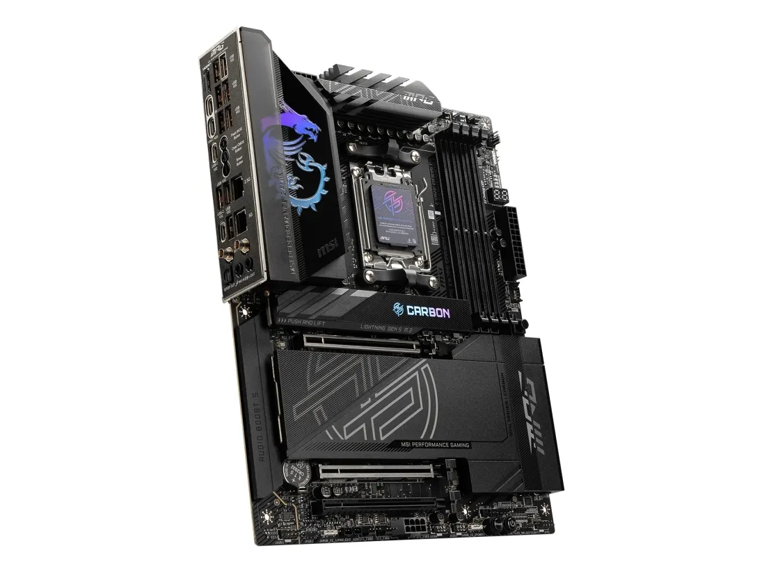 With impressive audio capabilities, the MPG X870E CARBON WIFI incorporates Realtek ALC4080, delivering high definition audio for a rich sound experience. The extensive expansion slots, including multiple PCIe 5.0 and M.2 slots, offer flexibility for future upgrades. Additionally, the pre-mounted I/O shield enhances durability and installation ease. The motherboard’s design includes features like MSI Mystic Light for customizable RGB effects and Frozr AI Cooling to maintain optimal thermal performance, ensuring users can enjoy stable operation during extended gaming sessions or intensive tasks.