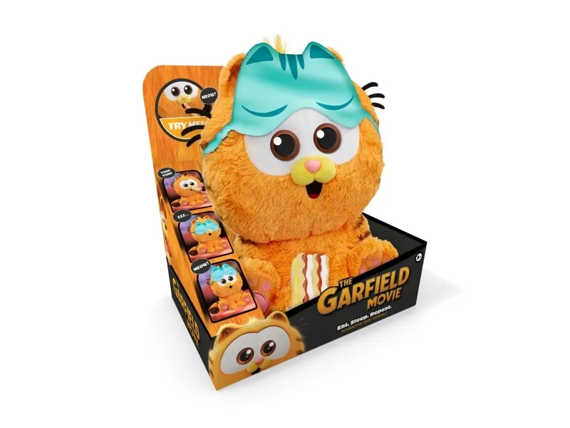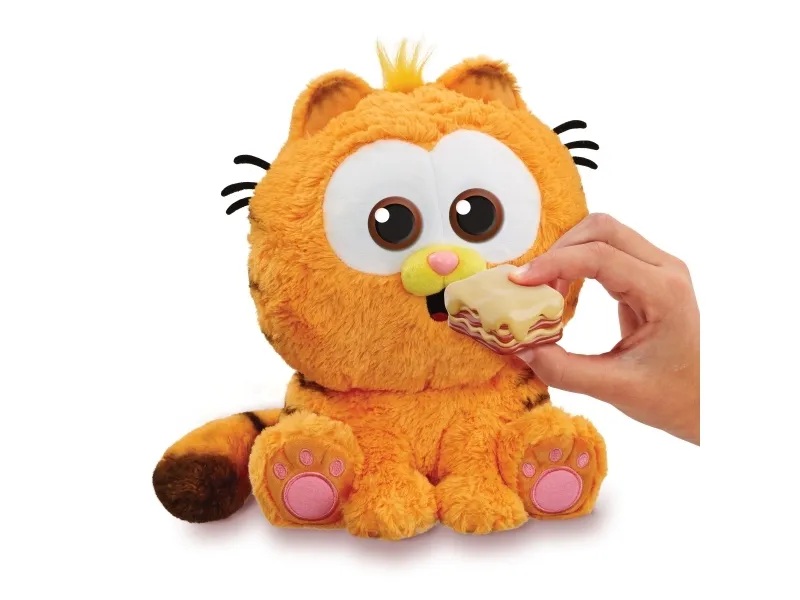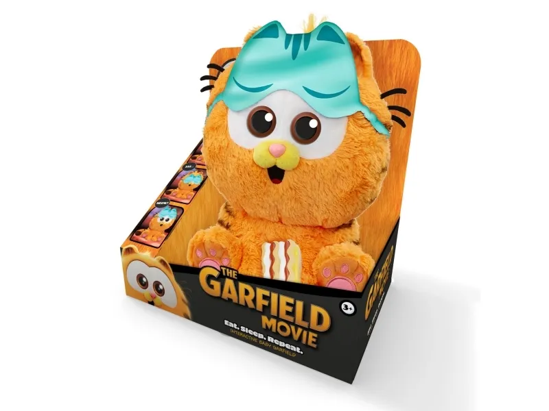 Interaktiva Garfield är lika aktiv som sin föregångare. Han älskar lasagne, lyssna hur han njuter av den. Mätt i magen är det skönt att ta en tupplur. Shhh, sätt en sovmask över hans ögon och låt honom sova fridfullt. Batterier 3 x AAA ingår ej. 3+
