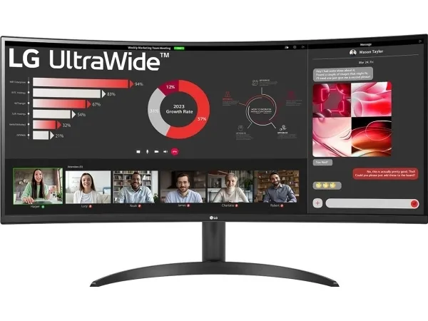 The LG UltraWide 34WR50QK-B 34-inch monitor offers an immersive viewing experience with its 21:9 aspect ratio and a resolution of 3440 x 1440. The curved screen design enhances depth perception, making it ideal for gaming and multitasking. This monitor utilizes TFT active matrix technology and features an image brightness of 300 cd/m² and a contrast ratio of 3000:1, ensuring vibrant and lifelike images across a wide viewing angle. Whether working on intricate designs or enjoying movies, the 178-degree horizontal and vertical viewing angles provide stunning visuals from virtually any position. Additional features include Flicker Safe and Reader Mode to help reduce eye strain during extended use. The monitor also incorporates Smart Energy Saving technology for efficient power consumption. With the DAS Mode for dynamic action sync and Black Stabilizer for enhanced visibility in dark scenes, this monitor caters to gamers and professionals alike. It comes equipped with HDMI and DisplayPort connectivity, along with an ergonomic stand that supports tilt adjustments for comfortable viewing angles.