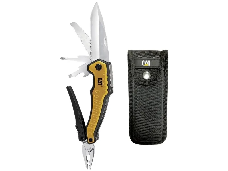 Cat 9-i-1 XL MultiTool med knivklinge og tang 9-i-1: Spidstang, trådskærer, crimper, stor kniv, savklinge, fil, flaskeåbner, stjerneskruetrækker, kærvskruetrækker