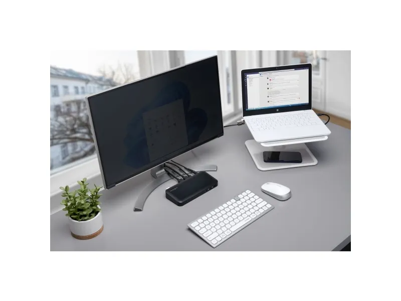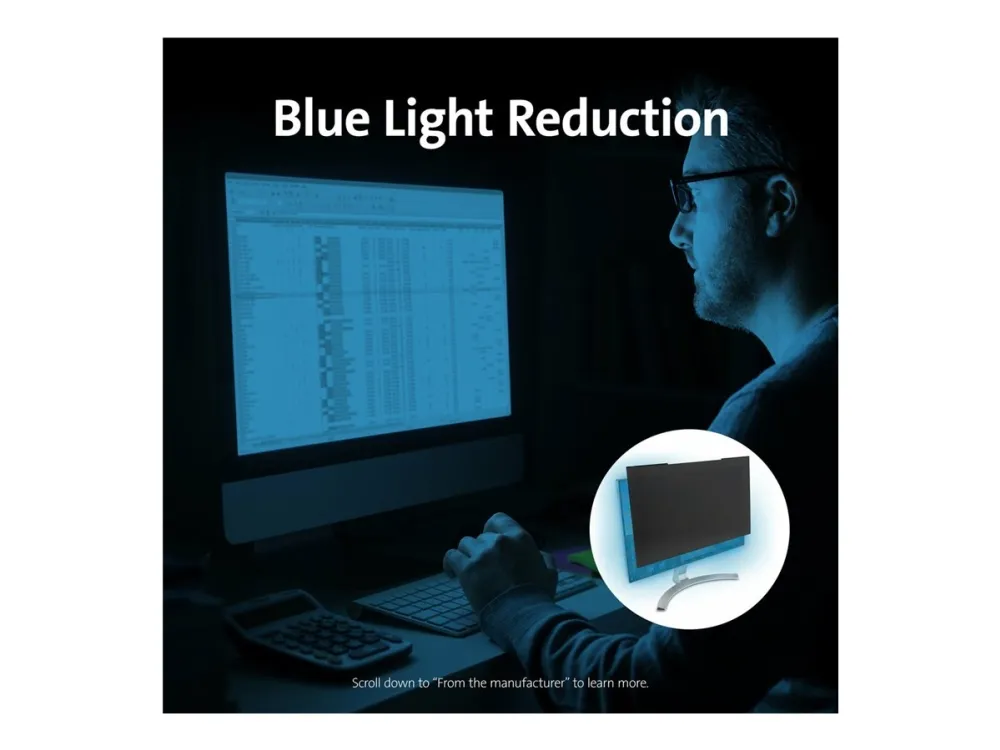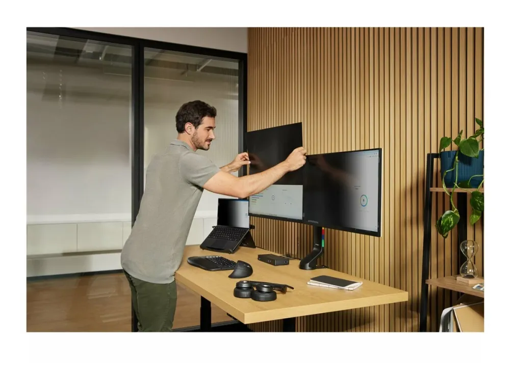 Moreover, the privacy screen is built to withstand everyday wear and tear, thanks to its scratch-resistant feature. It also boasts a range of functionalities aimed at improving user health and productivity, including a reduction of blue light transmission by 30%, which significantly reduces eye strain during prolonged use. Additionally, the antimicrobial coating ensures your screen remains hygienic, minimizing the risk of microbial growth. Whether you're working in an office or from home, the Kensington MagPro Monitor Privacy Screen offers a blend of privacy, protection, and health benefits, making it an essential accessory for any professional workspace.